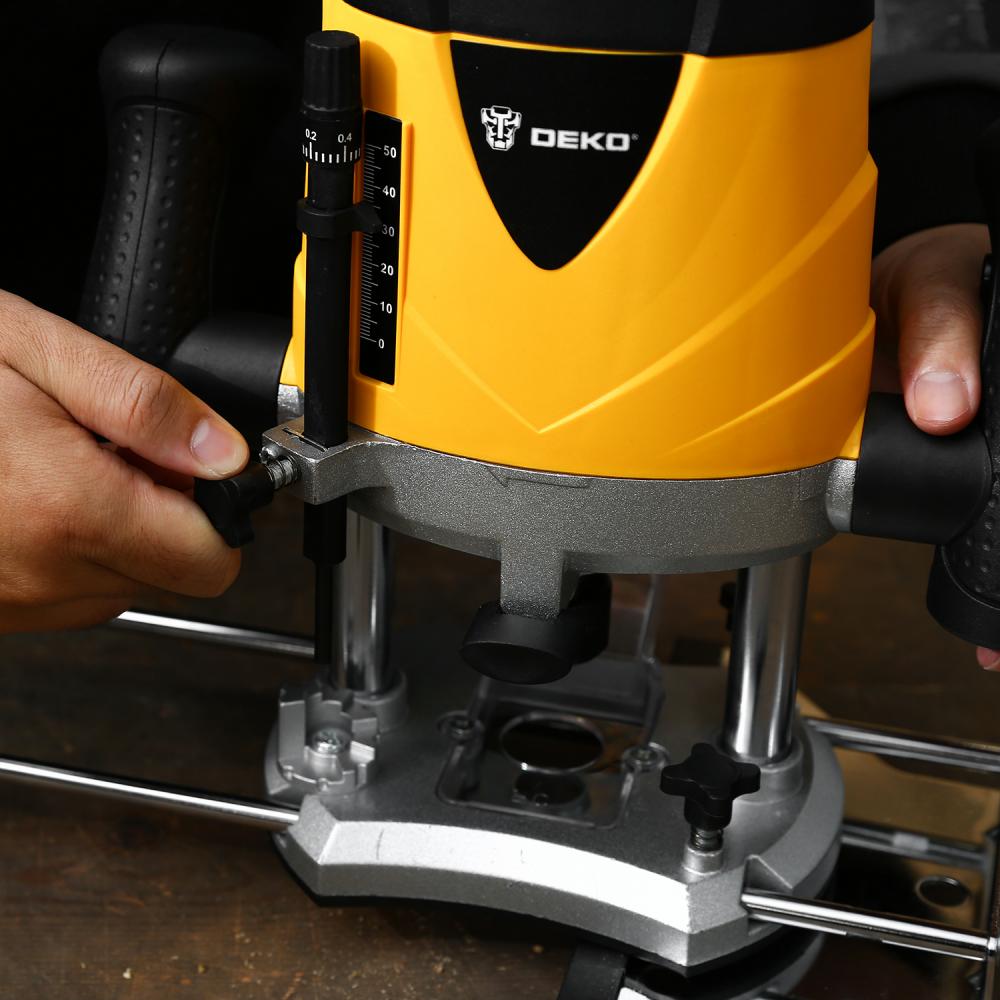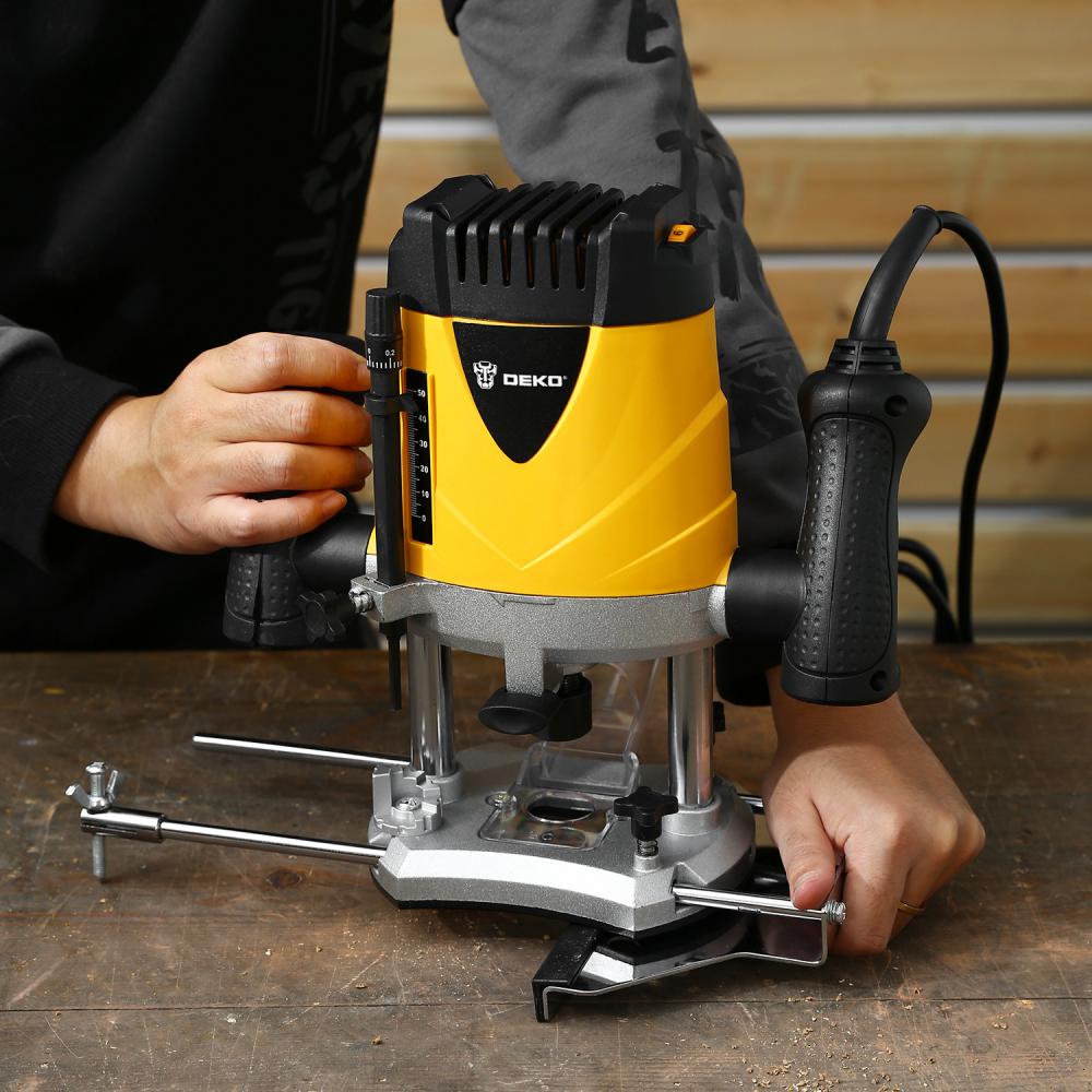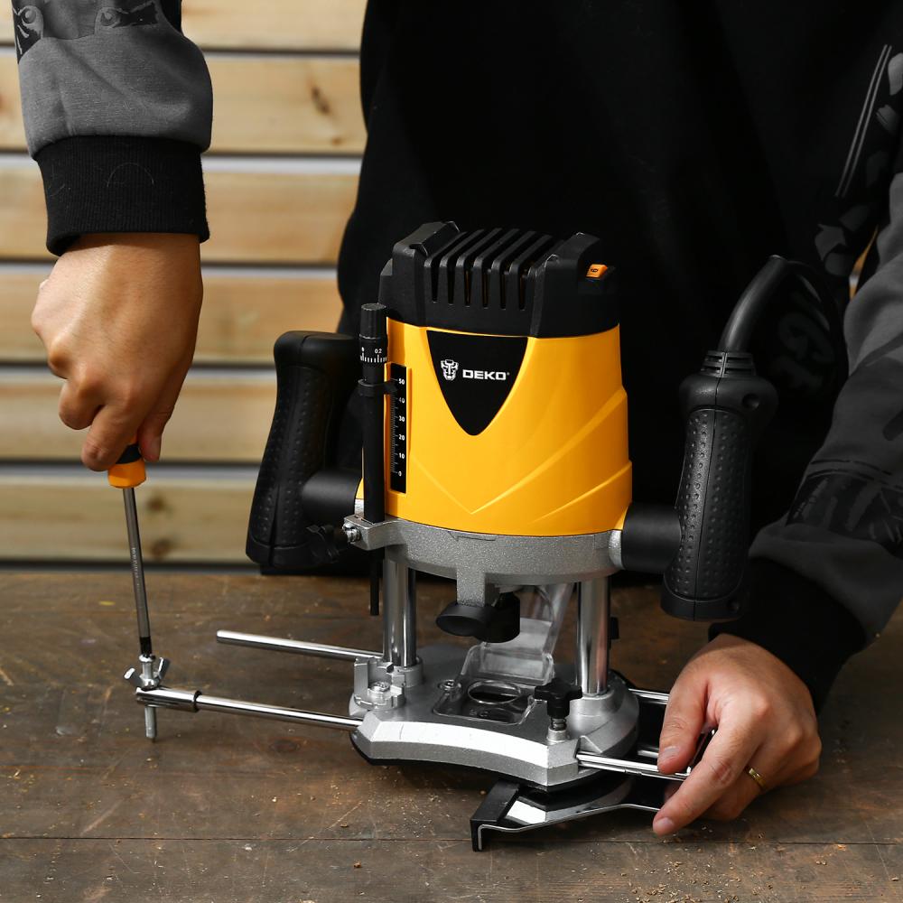 - Фрезер DEKO DKR1900 применяется в различных столярных и плотницких работах для обработки кромок и профилей, фасок в деревянных конструкциях, для изготовления пазов и т.д.
