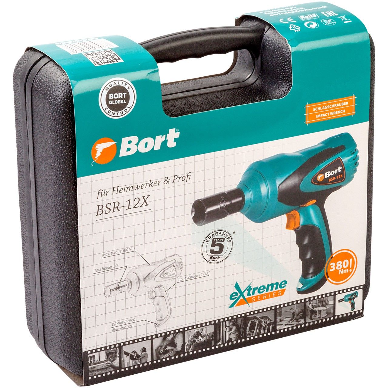 - Гайковерт BSR-12Х – продвинутая и мощная модель по сравнению с двумя другими моделями линейки шуруповертов Bort, входит в серию eXtreme.