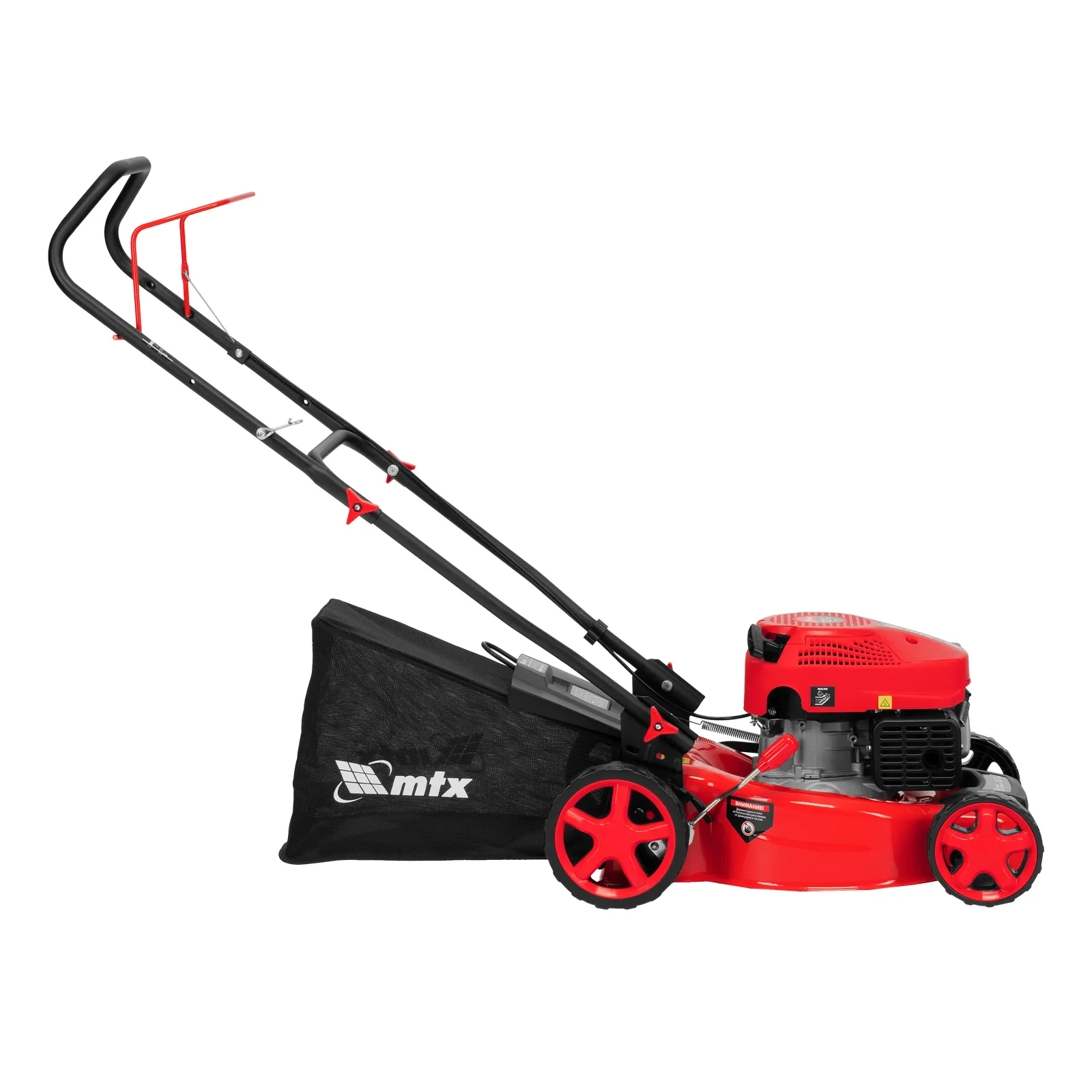 Бензиновая газонокосилка MTX GL41-K с двигателем объемом 127 см³ и травосборником объемом 40 л обеспечивает ширину скашивания 41 см. Предназначена для кошения травы на газонах и лужайках, оптимальна для ухода за приусадебным участком небольшой площади. Возможна работа в 2 режимах: сбор в травосборник и выброс скошенной травы назад. Высота скашивания регулируется в диапазоне 25-75 мм (предусмотрено 5 уровней) — можно привести в порядок спортивную площадку, лужайку для отдыха и т.д. Четырехтактный двигатель мощностью 3 л.с. позволяет эффективно решать поставленные задачи.