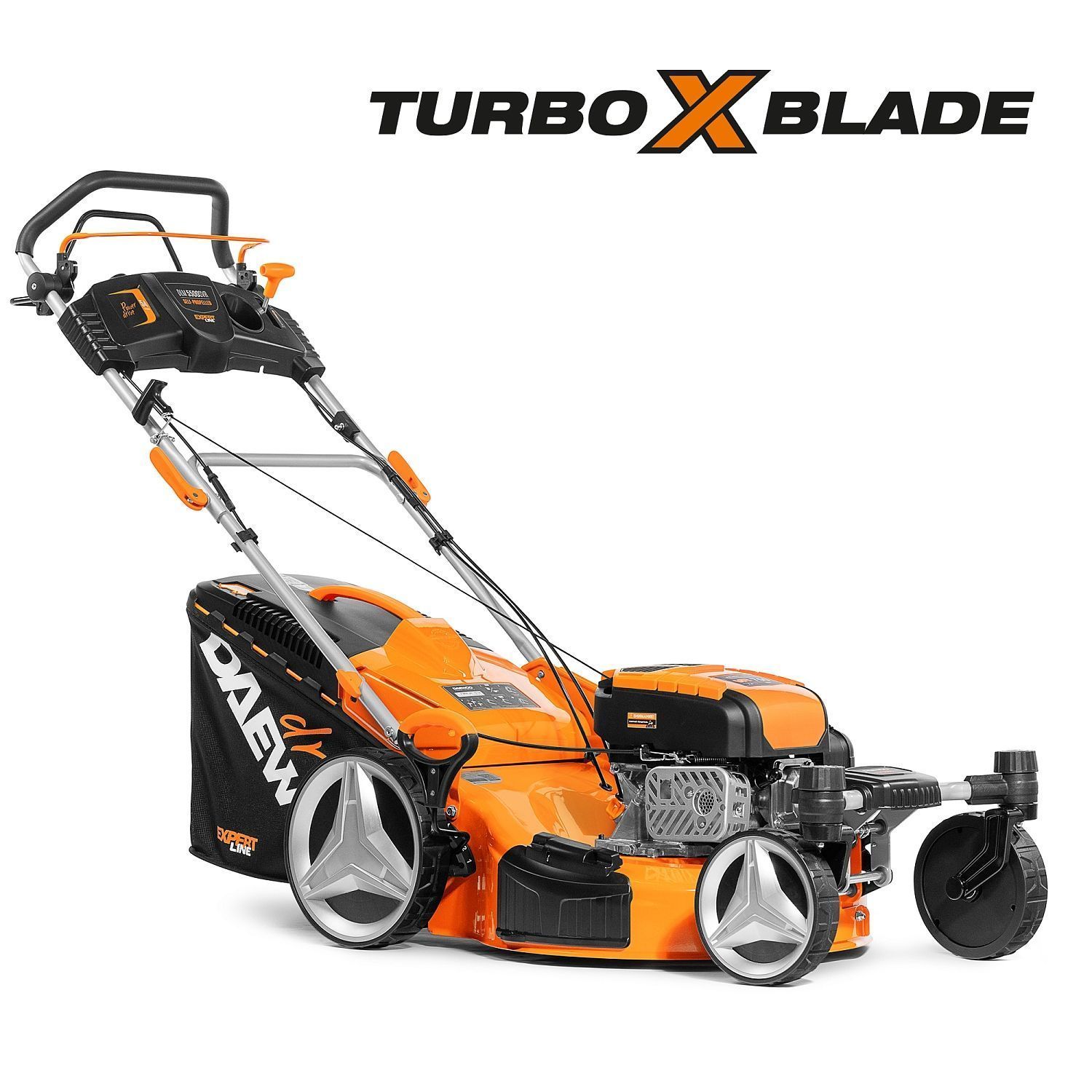 7,0 л.с, 190 см3, 54 см, 4 в 1, двойные рояльные колеса 360, самоходная + ВАРИАТОР , травосборник 70л, 25-75мм - центральная, НОЖ - TURBO X BLADE, 36 кг.