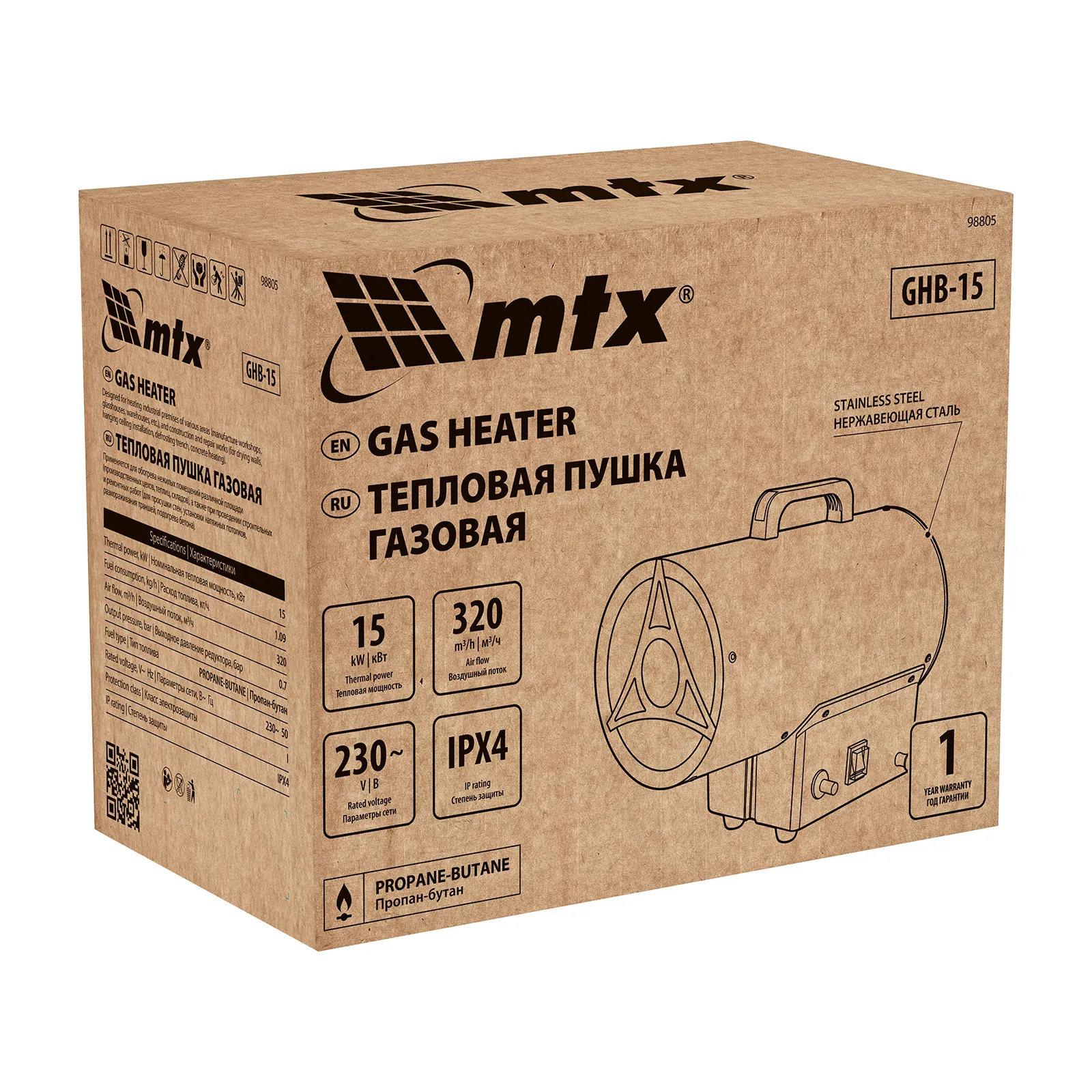Газовая тепловая пушка GHB-15, 15 кВт, 320 м3/ч, пропан-бутан MTX 98805