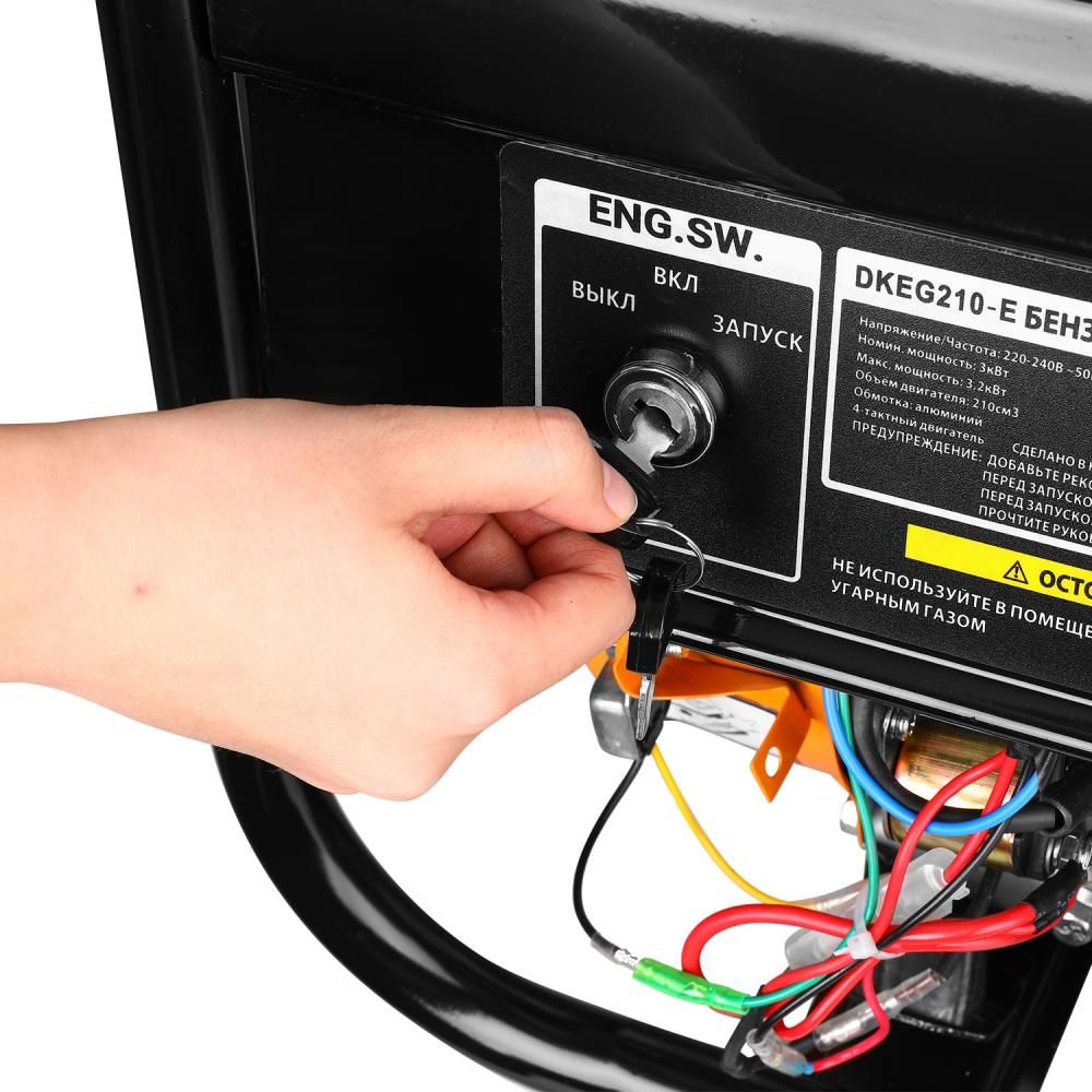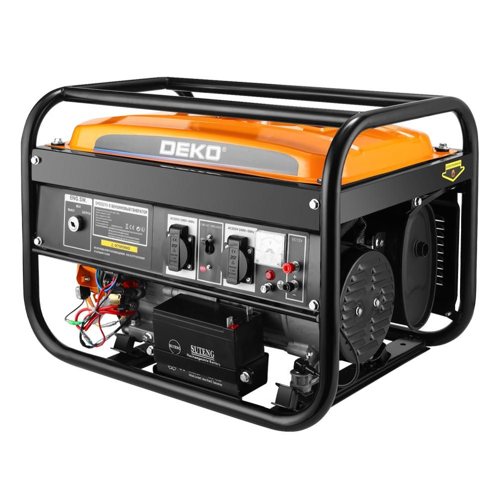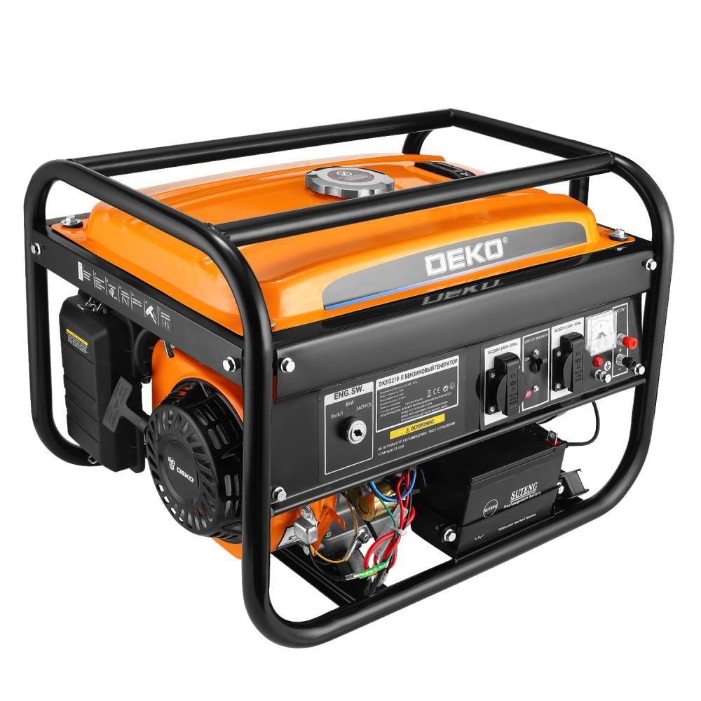 - Генератор бензиновый DEKO DKEG210-E, 3,2 кВт предназначен для выработки однофазного электрического тока напряжением 220 В и частотой 50 Гц.