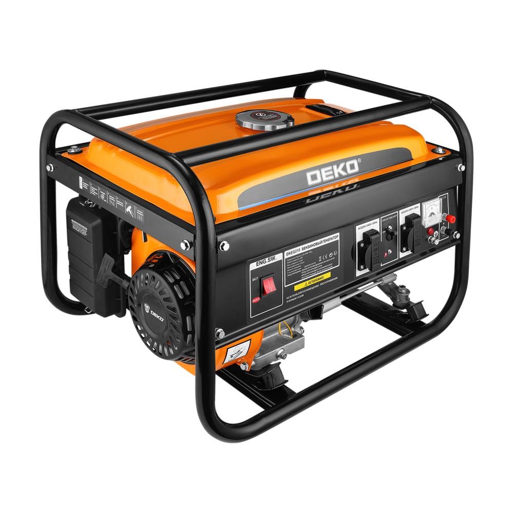 - Генератор бензиновый DEKO DKEG210, 3,2 кВт предназначен для выработки однофазного электрического тока напряжением 220 В и частотой 50 Гц.
