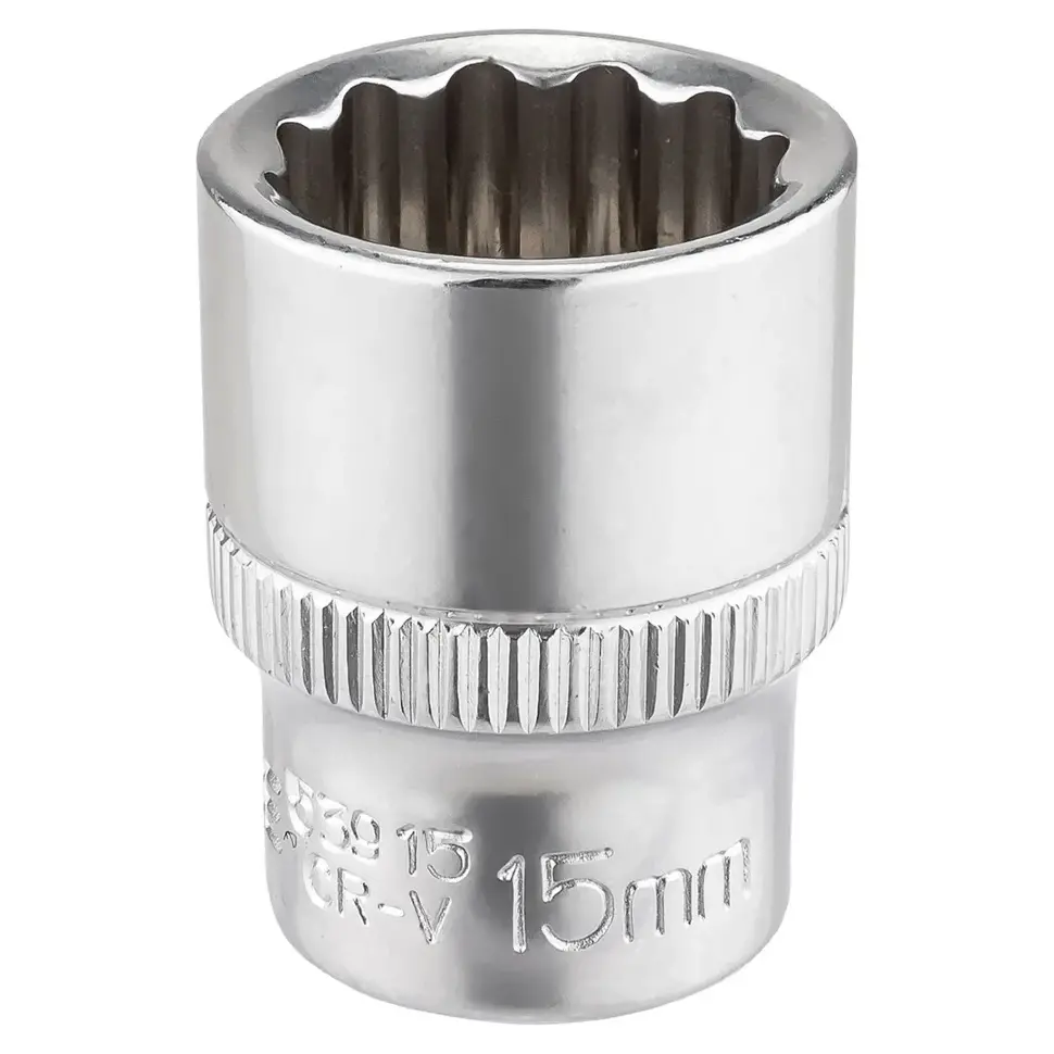 Головка 15 мм (12‑гранная), 3/8" RockFORCE RF‑53915 — прочная торцевая головка для работы с крепежом соответствующего размера, обеспечивающая надёжный захват и удобство при работе под разными углами.