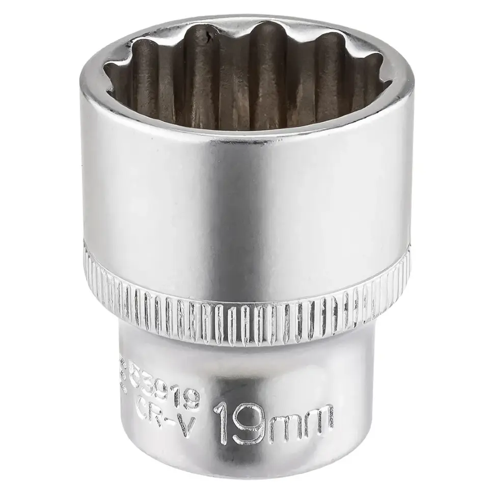 Головка 19 мм (12‑гранная), 3/8" RockFORCE RF‑53919 — прочная торцевая головка для работы с крепежом соответствующего размера, обеспечивающая надёжный захват и удобство при работе под разными углами.