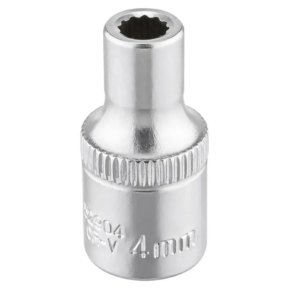 "Головка 4 мм (12‑гранная), 1/4" RockFORCE RF‑52904 — компактная торцевая головка для работы с мелким крепежом, обеспечивающая надёжный захват и удобство при работе под разными углами.