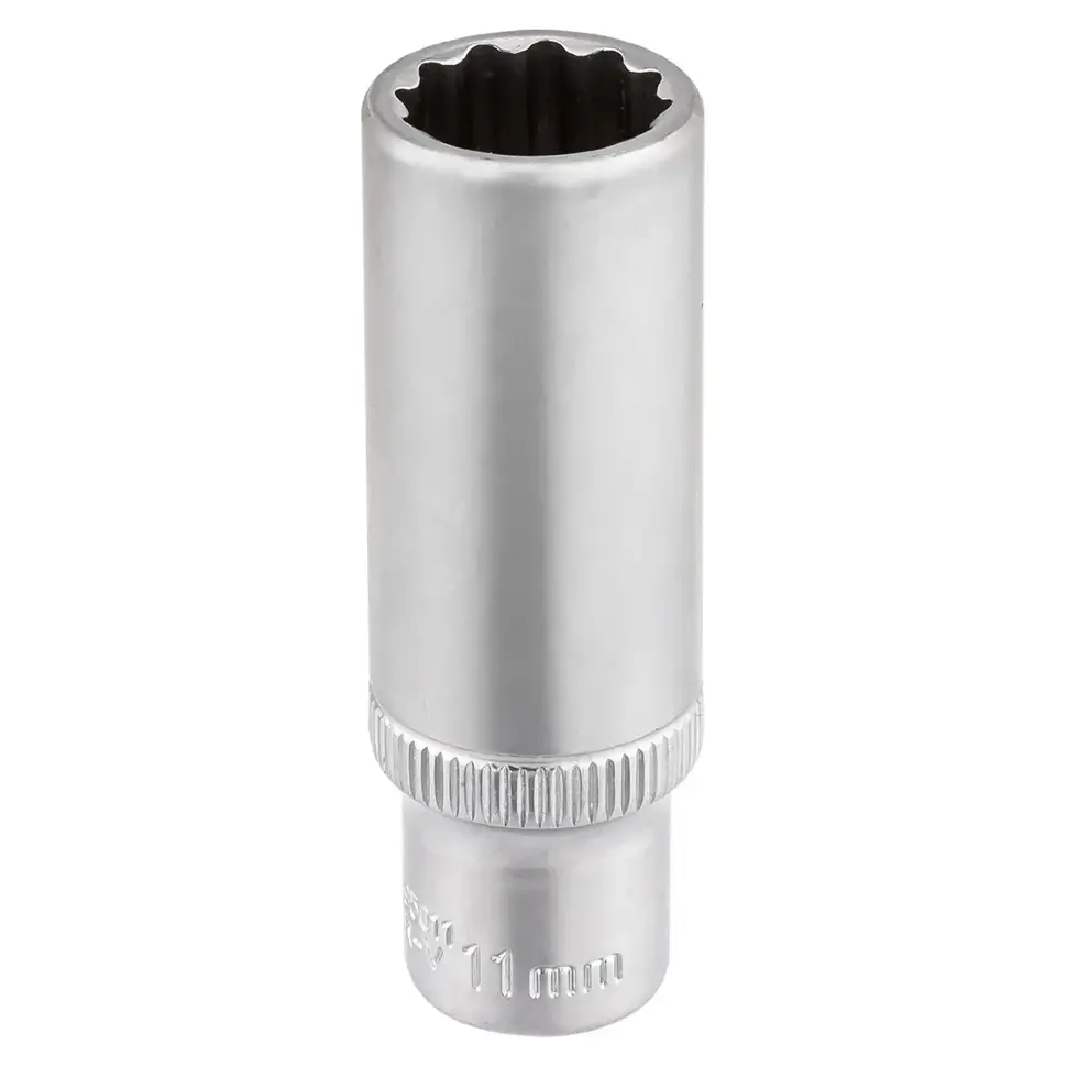 Головка глубокая 11 мм (12‑гранная), 1/4" RockFORCE RF‑5295011 — удлинённая торцевая головка для работы с крепежом соответствующего размера, особенно удобная при доступе к утопленным гайкам и болтам.