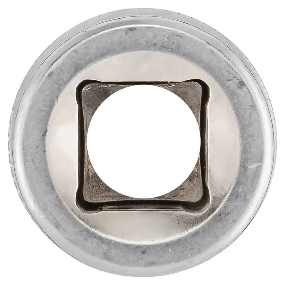 Шестигранный профиль обеспечивает плотный контакт с гранями крепежа, снижая риск их повреждения, а посадочный квадрат 3/8" совместим с трещотками, воротками и другими приводами этого стандарта.