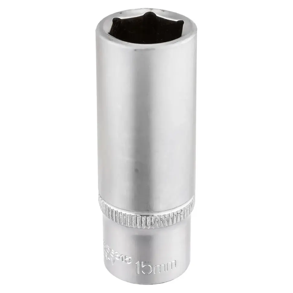 Головка глубокая 15 мм (6‑гранная), 3/8" RockFORCE RF‑5356315 — удлинённая торцевая головка для работы с крепежом соответствующего размера, особенно удобная при доступе к утопленным гайкам и болтам.