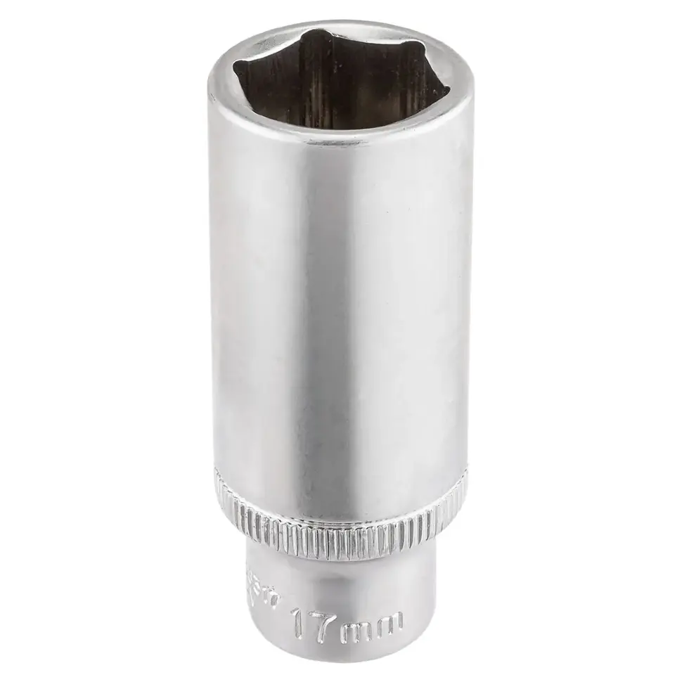 Глубокая торцевая головка Forsage F-5356317 с размером 17 мм и шестигранным профилем предназначена для работы с крупным крепежом, особенно в труднодоступных местах, где стандартная головка не справится. Увеличенная длина позволяет легко дотянуться до утопленных гаек и болтов, например, в автомобильных узлах, корпусах оборудования или монтажных нишах.