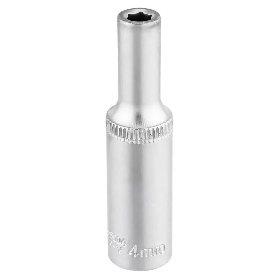 Головка глубокая 4 мм (6‑гранная), 1/4" RockFORCE RF‑5255004 — удлинённая торцевая головка для работы с крепежом соответствующего размера, особенно удобная при доступе к утопленным гайкам и болтам. Шестигранный профиль обеспечивает плотный контакт с гранями крепежа, снижая риск их повреждения, а посадочный квадрат 1/4" совместим с трещотками, воротками и другими приводами этого стандарта. Изготовлена из прочной хром‑ванадиевой стали, устойчива к износу и коррозии.