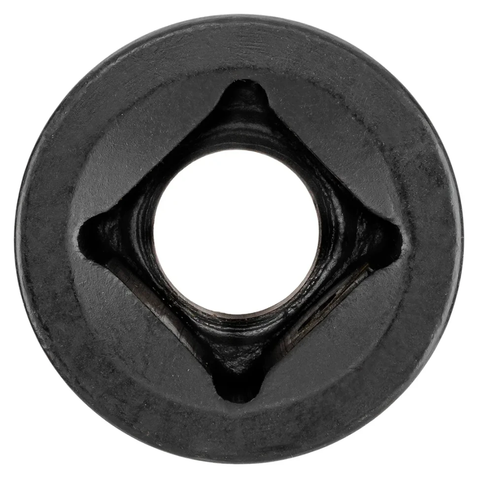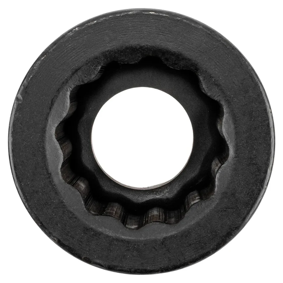 Ударная головка увеличенной глубины с 12-гранным профилем для работы с гайками и болтами размером 27 мм на длинных шпильках и выступающих резьбовых соединениях. Предназначена для использования с пневматическим и электрическим инструментом с приводом 1" при демонтаже и монтаже резьбовых соединений в автосервисе, строительстве, сельском хозяйстве и промышленном обслуживании.