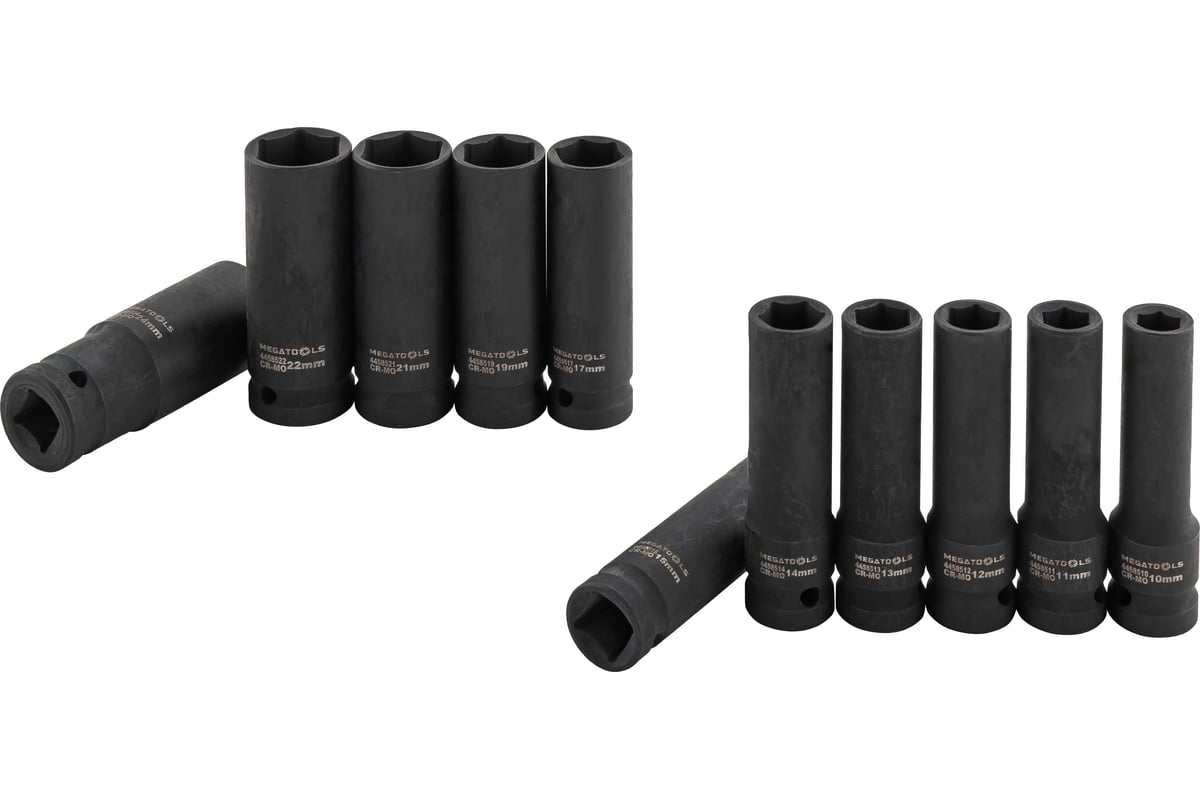 Головки глубокие ударные, набор 11пр., 1/2" (10-15, 17, 19, 21, 22, 24мм, 6гр.) MEGATOOLS MT-4117-5MPB