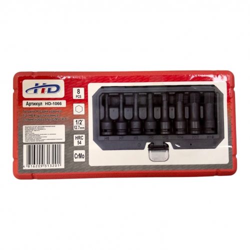 Головки-Насадки ударные 1/2" HEX (шестигранные) 5-19мм (набор 8пр) H-D HD-1066