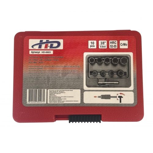 Головки под сорванные грани 10-19мм. 3/8" (набор 11пр.) 42CrMo H-D HD-0603