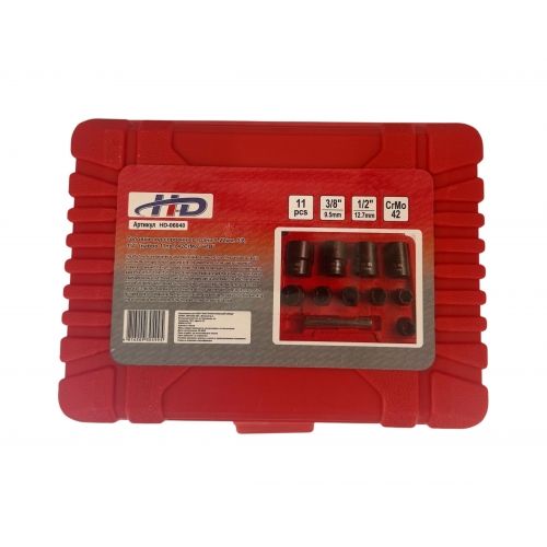Головки под сорванные грани 9-22мм. 3/8, 1/2" (набор 11пр.) 42CrMo H-D HD-06040