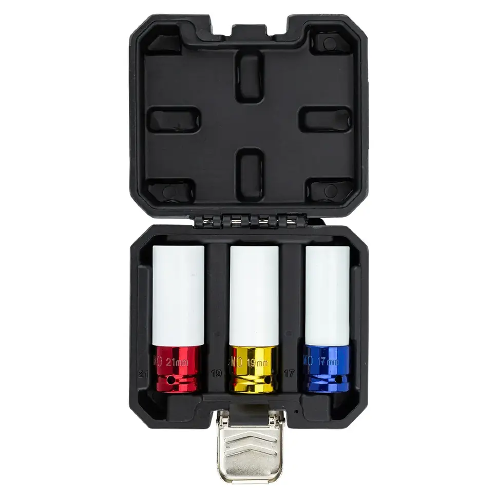 - Размеры: 17 / 19 / 21 мм — совместимы с большинством колесных гаек