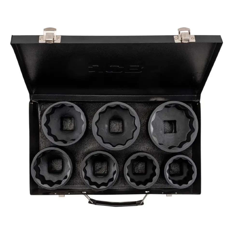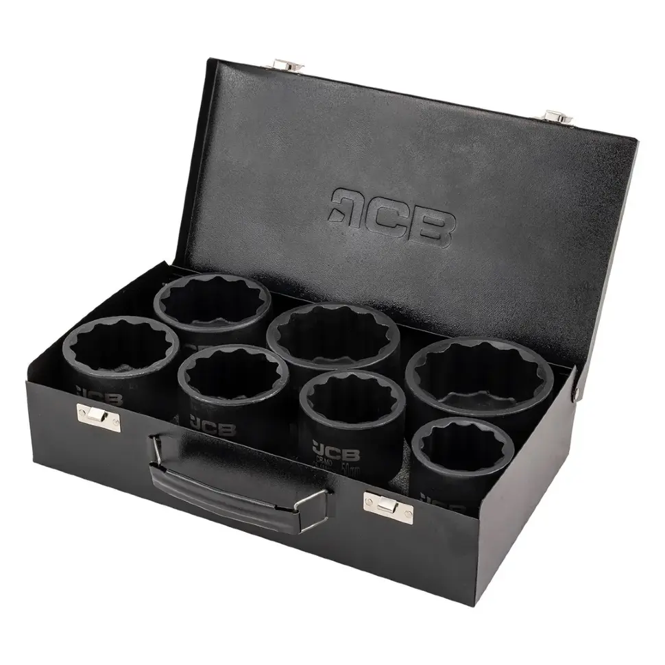 Набор ударных головок JCBJCB‑8071‑9MPB, 7 пр., 1" (12 граней) — профессиональный комплект для работы с крупным крепежом на грузовой технике, сельхозмашинах и в строительной сфере.