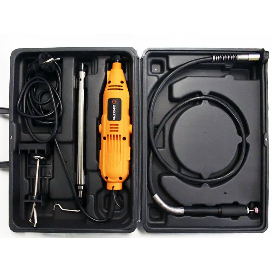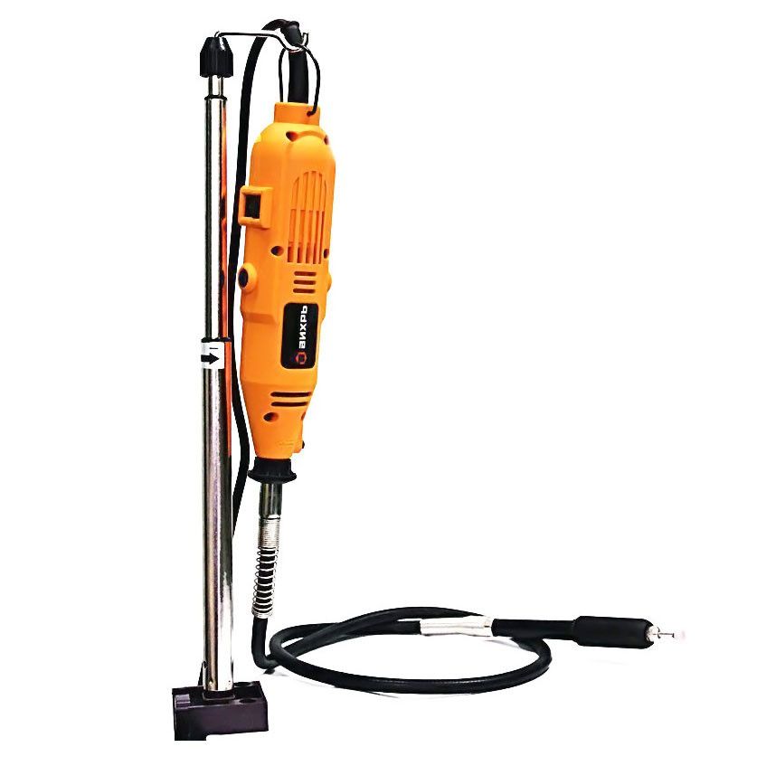 - Гибкий вал позволяет более комфортно работать с мелкими деталями, есть стойка для удобного хранения;