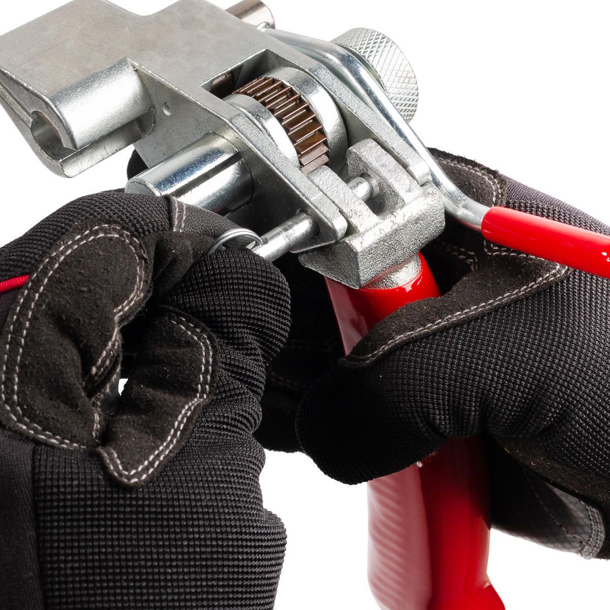 Инструмент для натяжения стальной ленты толщиной до 1 мм. Предназначен для натяжения ленты из нержавеющей стали при монтаже кронштейнов на опорах ВЛИ и крепеже тары
