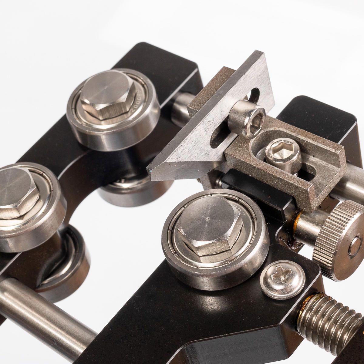 - Прижим кабеля вращением рукоятки. 6 прижимных роликов