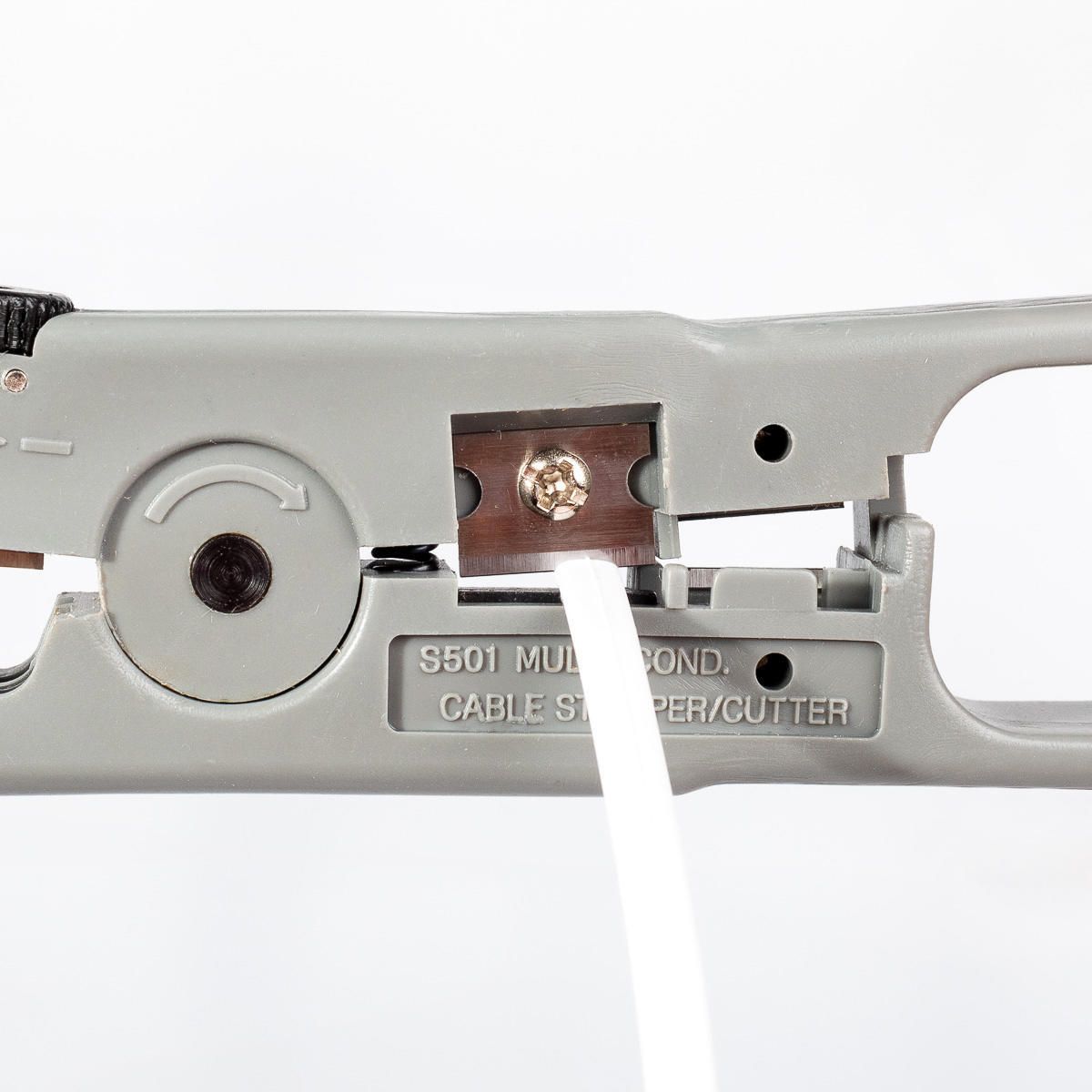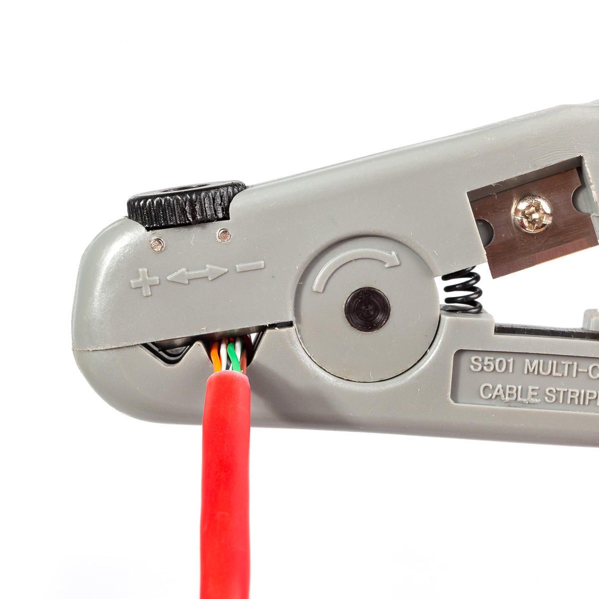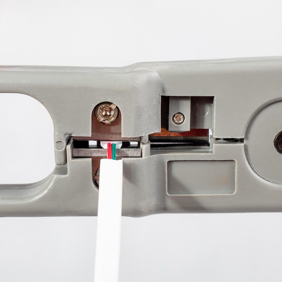 - Снятие оболочки с круглых проводов типа UTP, STP