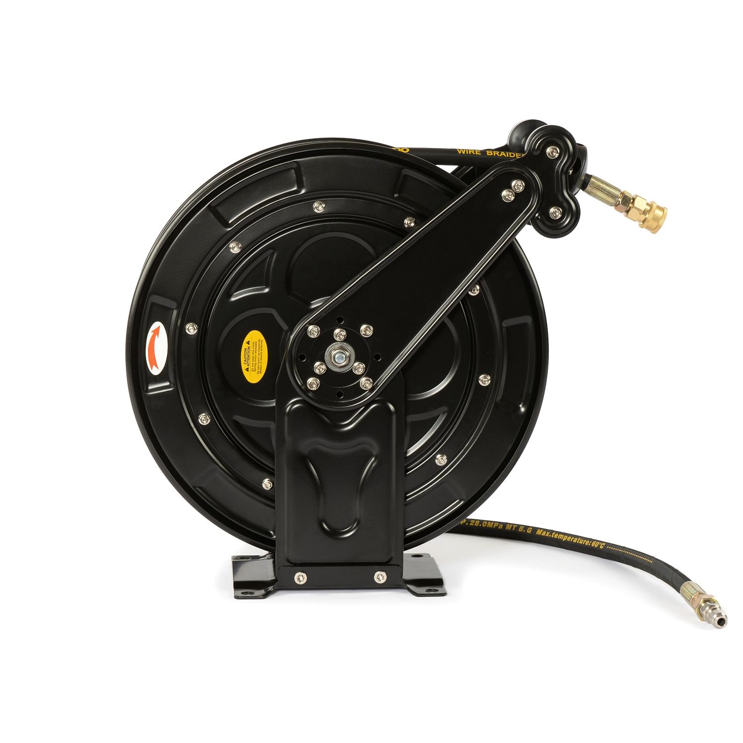 - Стопорный механизм позволяет фиксировать шланг через каждый оборот барабана;