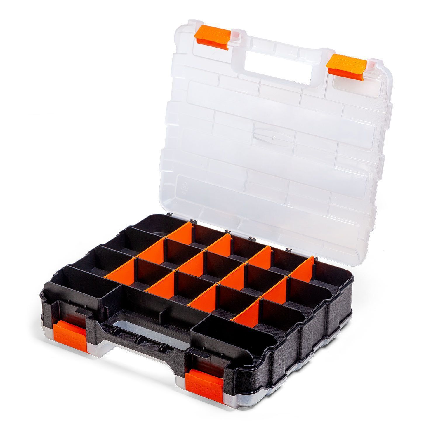 Пластиковый двухсторонний кейс-органайзер с модульными отделениями для хранения мелких предметов