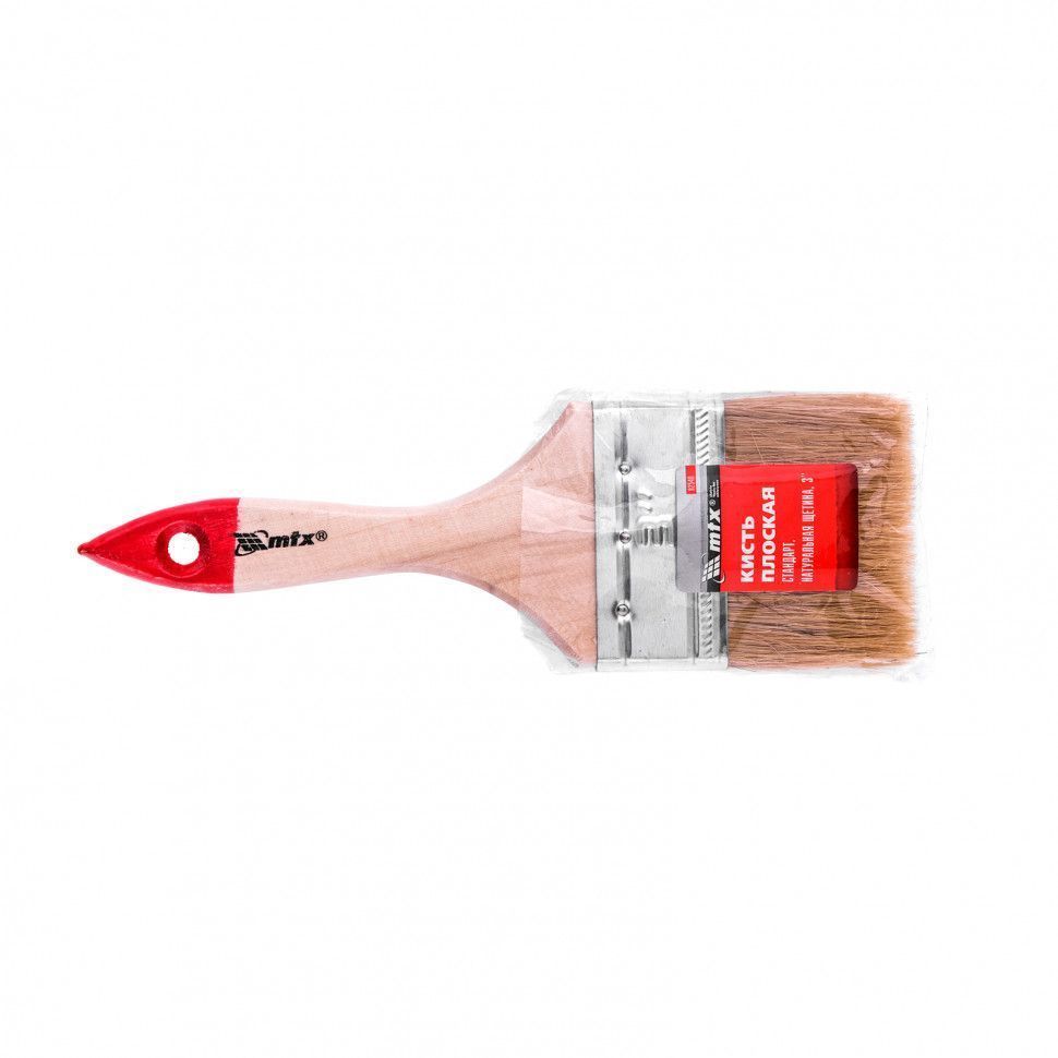 Кисть плоская "Стандарт" 3" (75 мм), натуральная щетина, деревянная ручка MTX 82540
