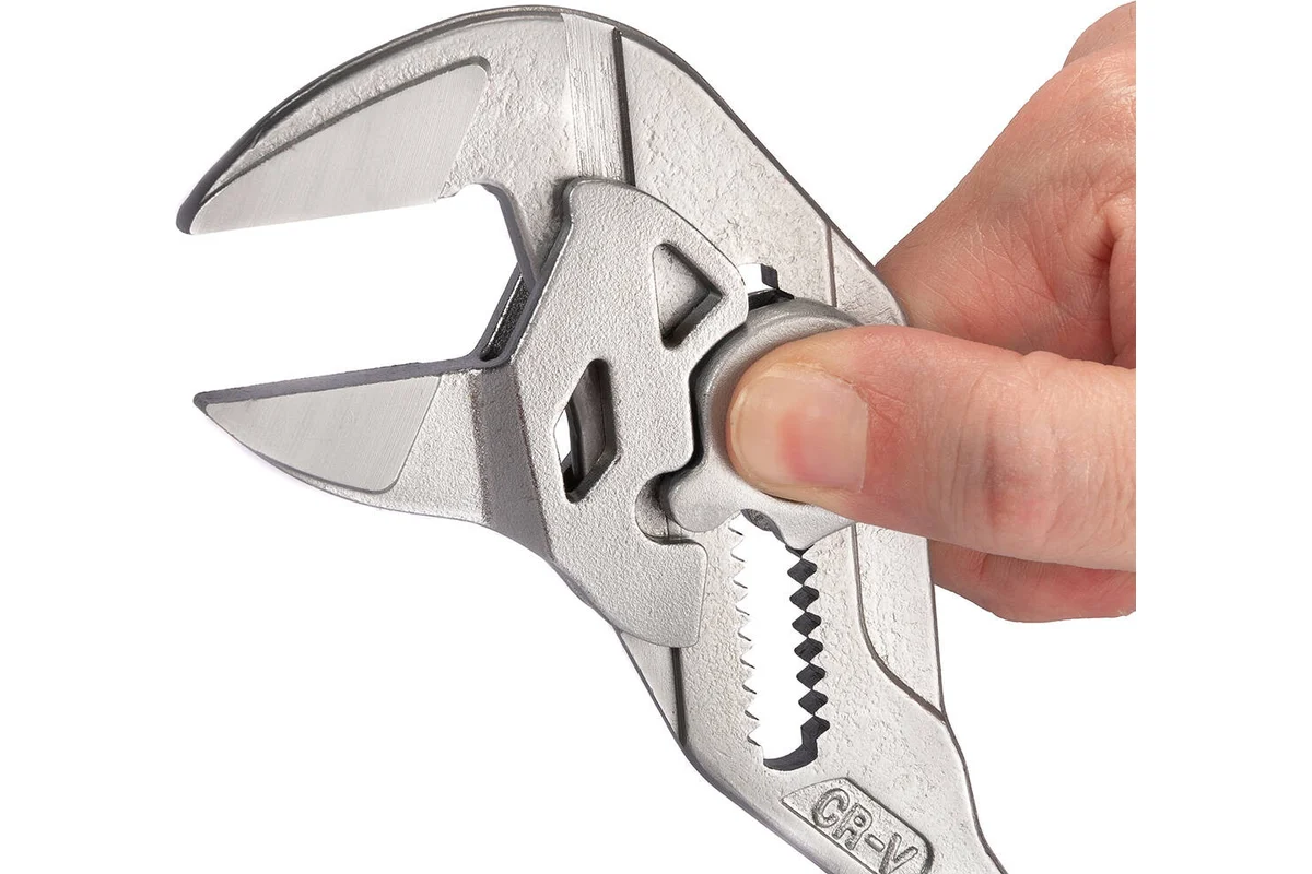 Точная многопозиционная регулировка механизма захвата для оптимальной установки по размеру детали без зазоров Регулировка раскрытия инструмента пружинной кнопкой Конструкция шарнира исключает случайную перестановку Бесступенчатая установка размера ключа благодаря параллельному ходу губок Гладкие губки позволяют работать с хромированными деталями без риска их повреждения Безлюфтовое прилегание поверхностей Минимальное усилие при работе благодаря специальной форме губок и рукояток Материал корпуса: кованая хром-ванадиевая сталь Обработка поверхности: фосфатирование