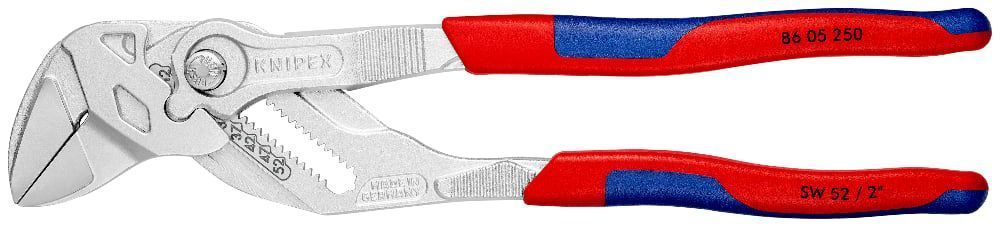 Клещи переставные - гаечный ключ, 52 мм (2"), L-250 мм, Cr-V, хром., 2-комп. рукоятки KNIPEX 8605250