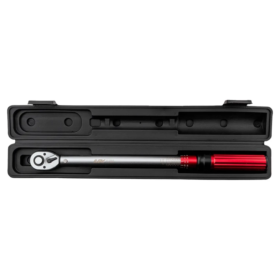 Динамометрический ключ щелчкового типа JBC с быстрой фиксацией и посадочным квадратом 3/8" предназначен для точной затяжки резьбовых соединений с контролируемым усилием в диапазоне 20-120Нм. При достижении установленного момента ключ издаёт характерный щелчок, что обеспечивает надёжную индикацию правильной затяжки и предотвращает повреждение деталей. Быстросъёмная головка и реверсивный храповой механизм позволяют удобно работать в ограниченном пространстве и оперативно менять насадки. Инструмент подходит для использования в автосервисе, бытовой техники, велосипедов и в других областях, где требуется точное соблюдение крутящего момента.