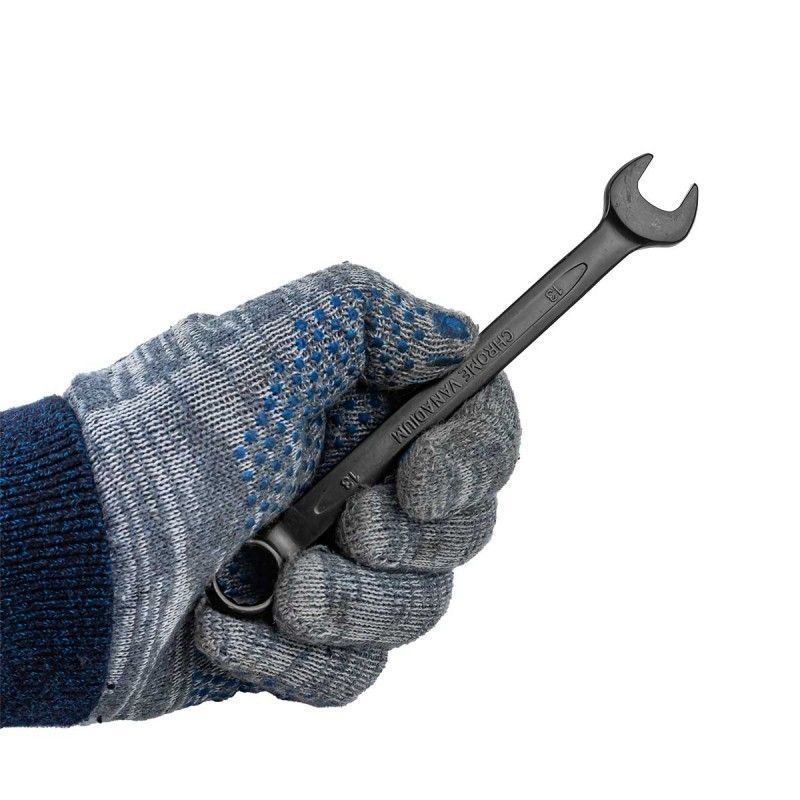 Ключ комбинированный рожково-накидной 13 мм предназначен для монтажа и демонтажа, а также для закручивания или раскручивания гаек, болтов и прочих крепежных изделий. Две рабочие стороны с накидным и рожковым профилем подходят для работы в самых труднодоступных местах. Рожковая сторона ключа предназначена для работ с крепежом, доступ к которому есть лишь с одной стороны, а накидная часть для проведения работ с высоко нагруженными резьбовыми соединениями. Накидная часть имеет 12 граней. Ключ изготовлен из высококачественной хромованадиевой стали, которая отличается устойчивостью к механическим нагрузкам.