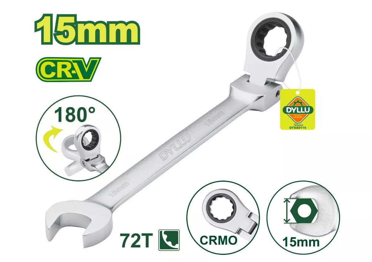 Ключ комбинированный с трещоткой и шарниром 15 мм DYLLU DTSA6115