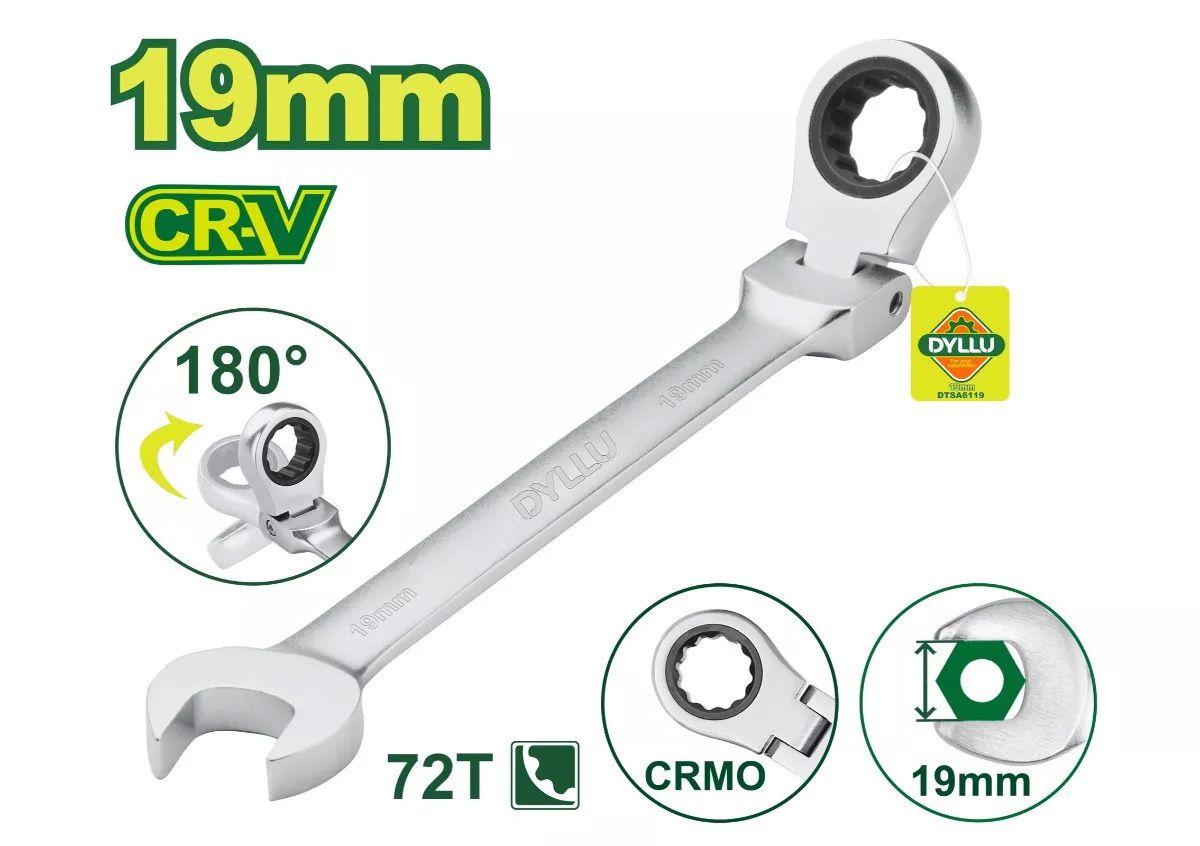 Ключ комбинированный с трещоткой и шарниром 19 мм DYLLU DTSA6119