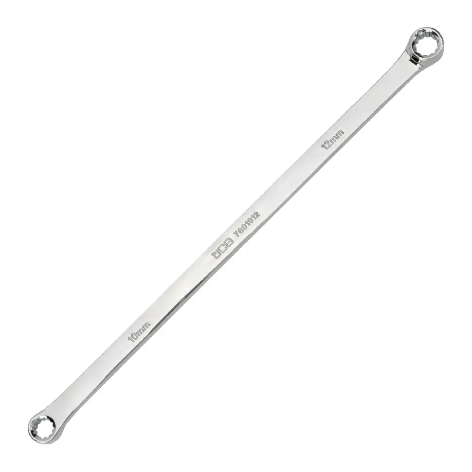 Ключ накидной экстра длинный 10×12 мм JCB JCB‑7601012 — профессиональный инструмент для работы в труднодоступных местах, где требуется надёжный захват и высокая передача усилия. Подходит для слесарных, монтажных и ремонтных операций с резьбовыми соединениями.