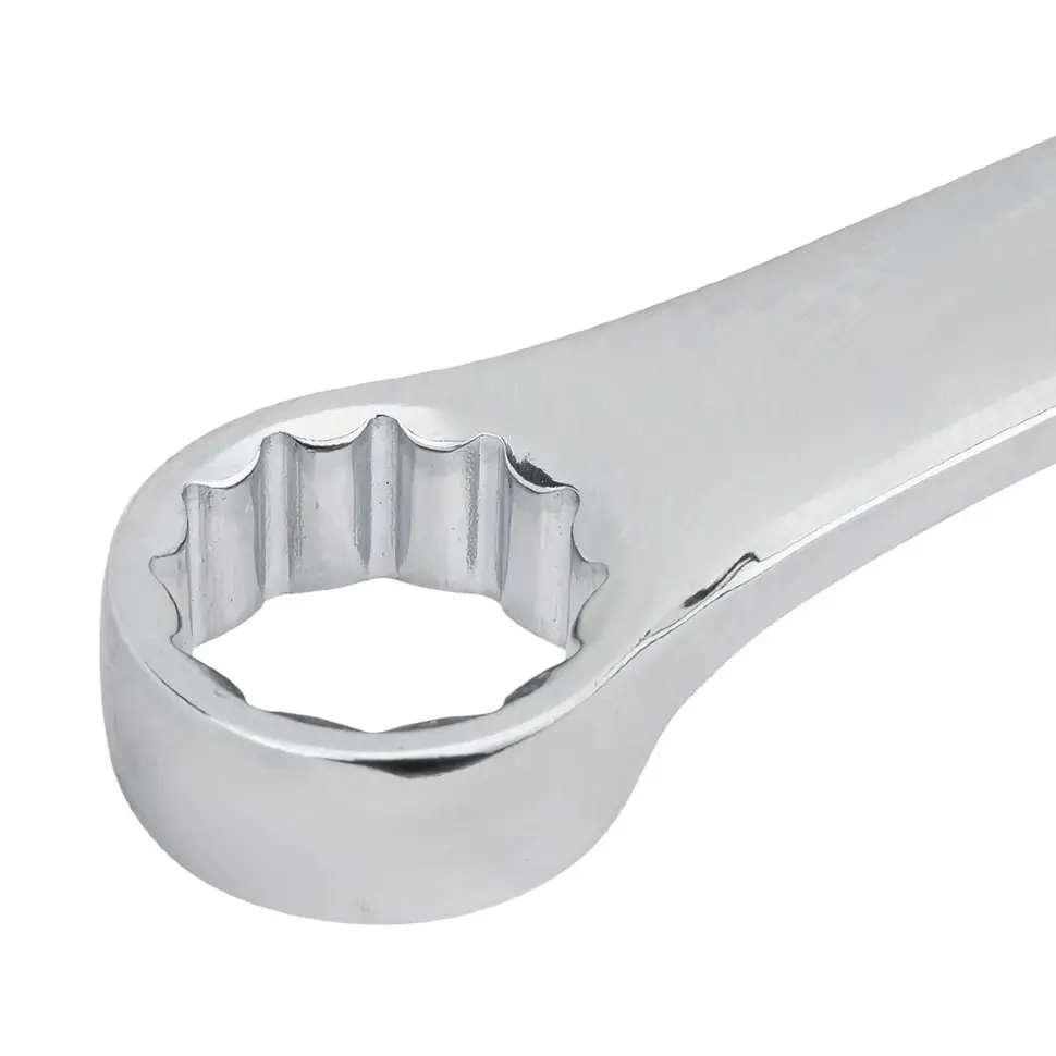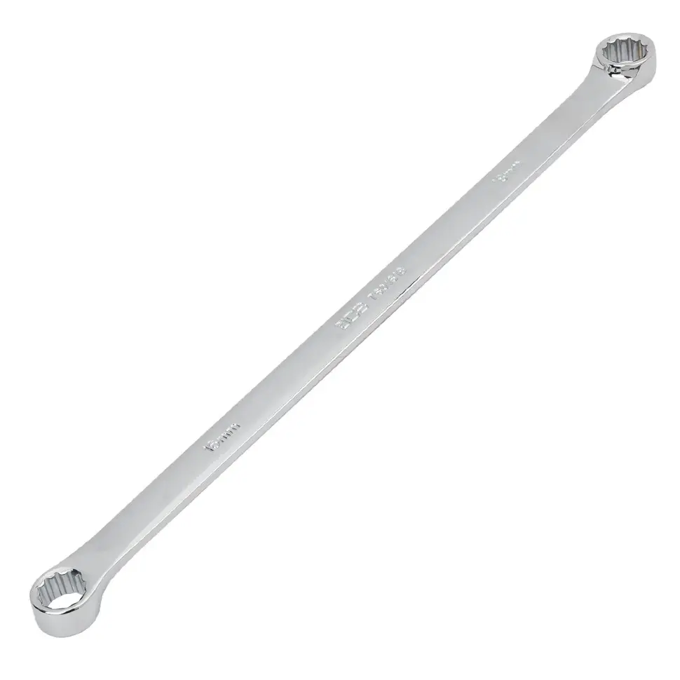 Изготовлен из прочной инструментальной стали с антикоррозийным покрытием. Удлинённая форма обеспечивает удобство при работе с глубоко расположенными крепежами, а накидные головки с 12-гранным профилем обеспечивают плотное прилегание к гайке и равномерное распределение нагрузки.