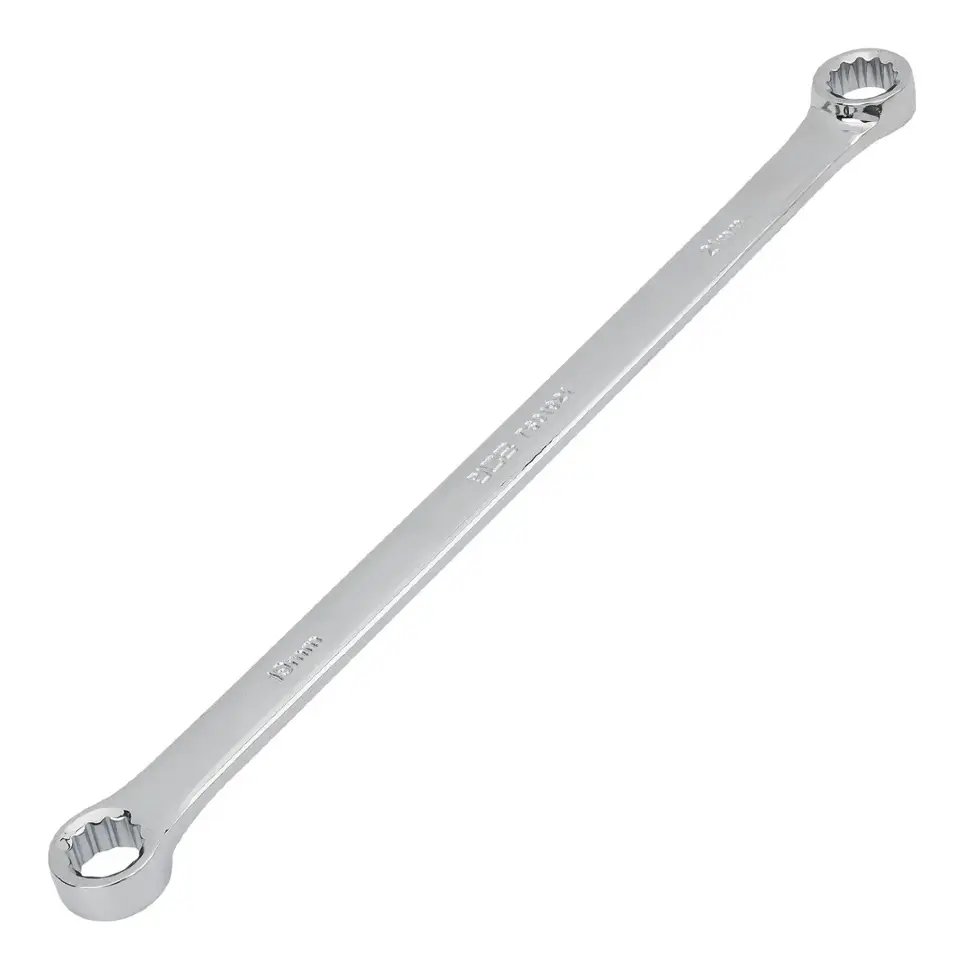 Изготовлен из прочной инструментальной стали с антикоррозийным покрытием. Удлинённая форма облегчает доступ к глубоко расположенным крепежам, а накидные головки с 12-гранным профилем обеспечивают надёжный захват и равномерное распределение усилия.