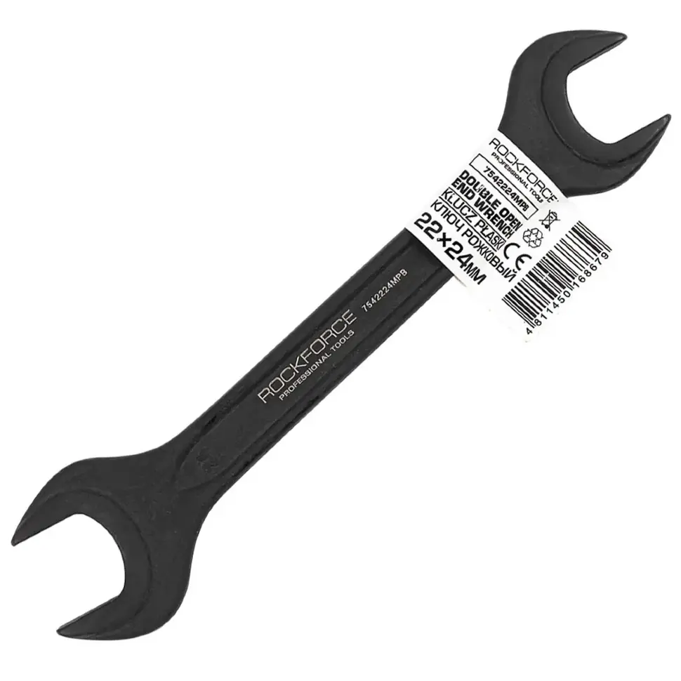 Ключ рожковый 22×24 мм RockFORCE RF‑7542224MPB — двусторонний гаечный ключ для работы с резьбовыми соединениями шестигранного профиля.