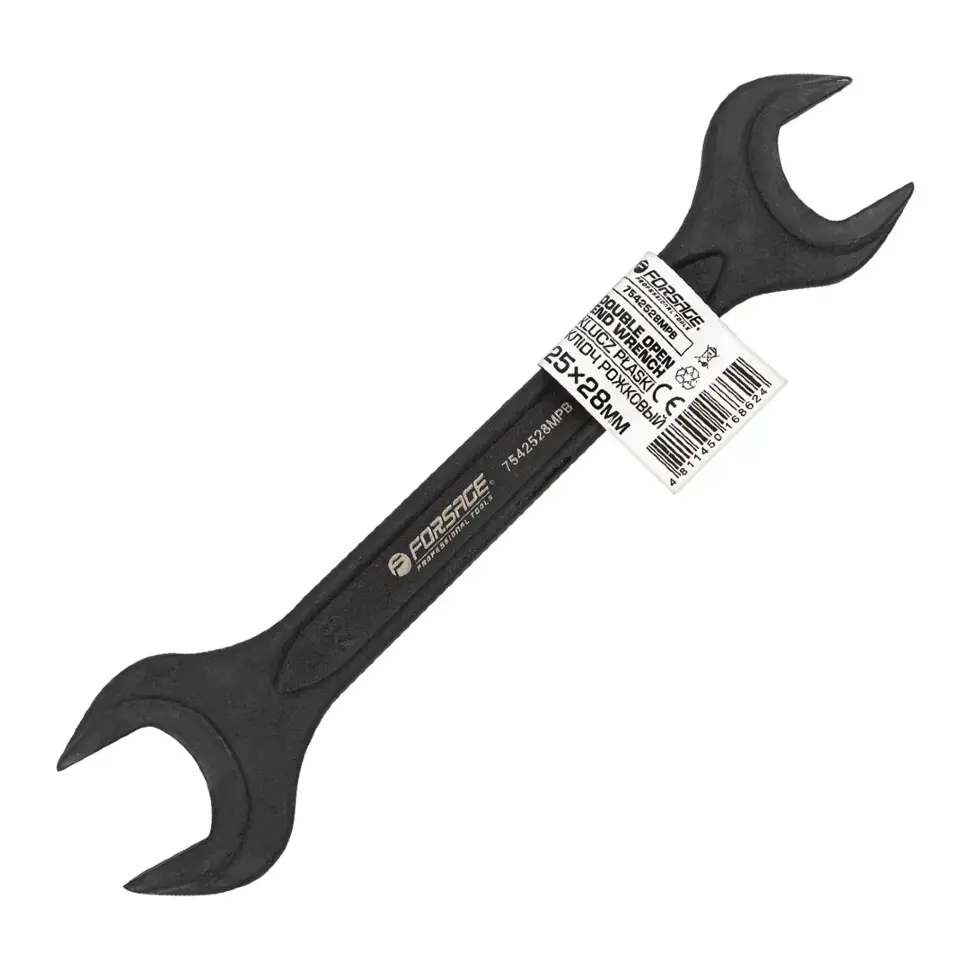 Ключ рожковый 25×28 мм Forsage F‑7542528MPB — двусторонний гаечный ключ для работы с резьбовыми соединениями шестигранного профиля.