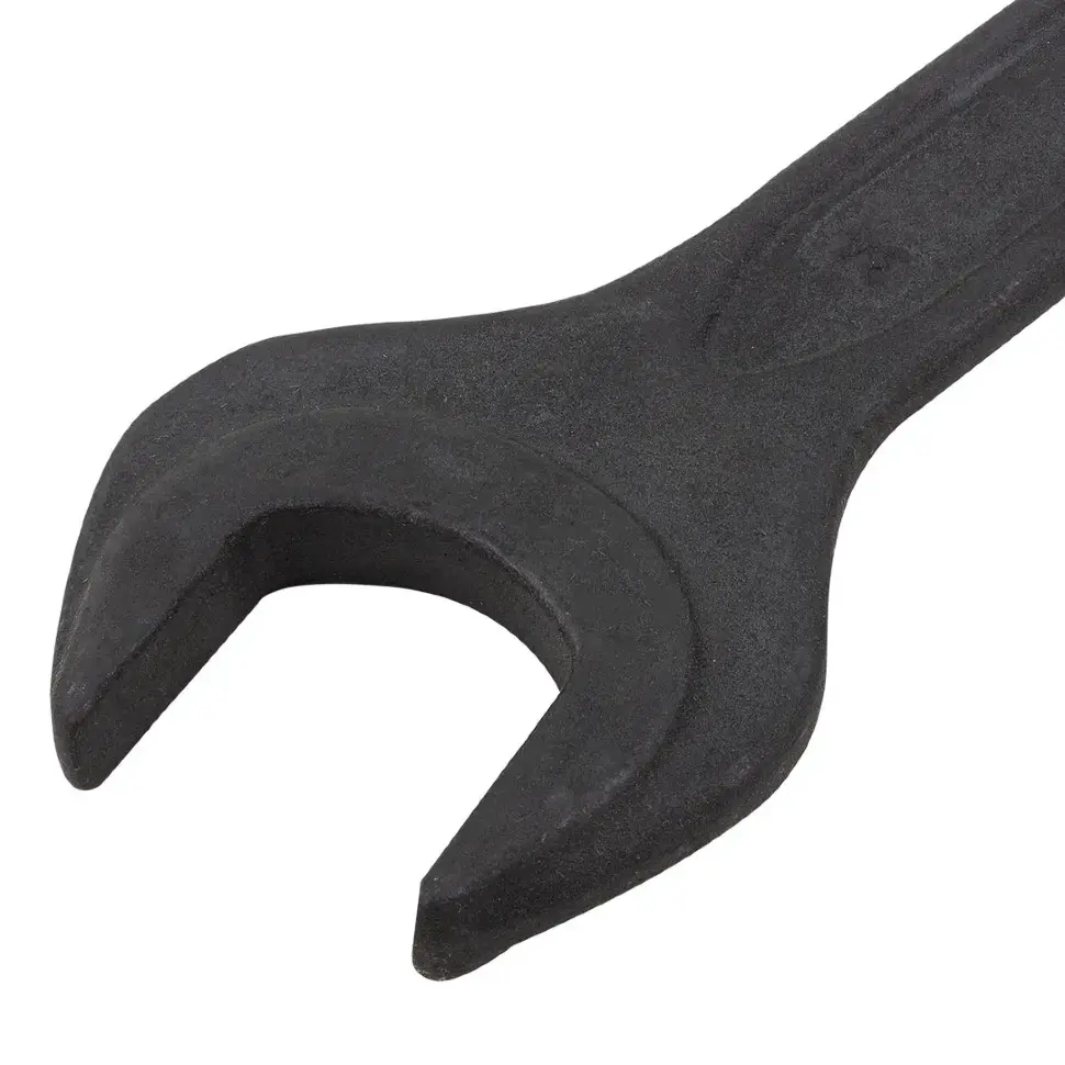Изготовлен из инструментальной стали, что обеспечивает высокую прочность, устойчивость к износу и защиту от коррозии. Двусторонняя рожковая конструкция позволяет работать с крепежом двух типоразмеров, а форма зевов обеспечивает надёжный захват без проскальзывания. Эргономичная форма рукоятки помогает эффективно прикладывать усилие и снижает усталость при длительной работе.