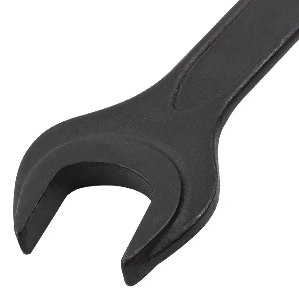 Изготовлен из инструментальной стали, что обеспечивает высокую прочность, устойчивость к износу и защиту от коррозии. Двусторонняя рожковая конструкция позволяет работать с крепежом двух типоразмеров, а форма зевов обеспечивает надёжный захват без проскальзывания. Эргономичная форма рукоятки помогает эффективно прикладывать усилие и снижает усталость при длительной работе.