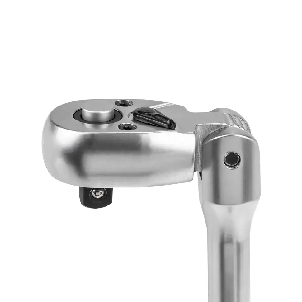 Ключ трещотка RockFORCE LIGHT RF LIGHT‑802318 с шарнирной головкой и посадочным квадратом 3/8″ — удобный инструмент для работы в труднодоступных местах, где требуется изменять угол наклона головки. Храповый механизм на 72 зубца обеспечивает плавный ход и позволяет работать с минимальным углом возврата всего 5°, что особенно полезно при ограниченном пространстве. Прочный корпус из хромованадиевой стали гарантирует долговечность, а эргономичная рукоятка обеспечивает комфортный хват и контроль усилия.