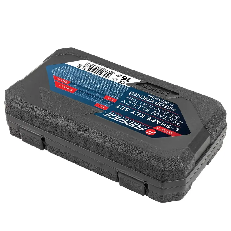 Набор Г-образных шестигранных ключей Forsage F‑5137D+3 (13+3 предмета) — универсальный комплект для работы с внутренними шестигранными и торцевыми крепежами. Применяется в автосервисе, при сборке мебели, техники, оборудования и в других монтажных задачах.