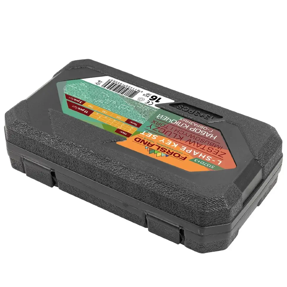 Набор Г-образных шестигранных ключей Forsland Forsland‑5137D+3 (13+3 предмета) — универсальный комплект для работы с внутренними шестигранными и торцевыми крепежами. Применяется в автосервисе, при сборке мебели, техники, оборудования и в других монтажных задачах.