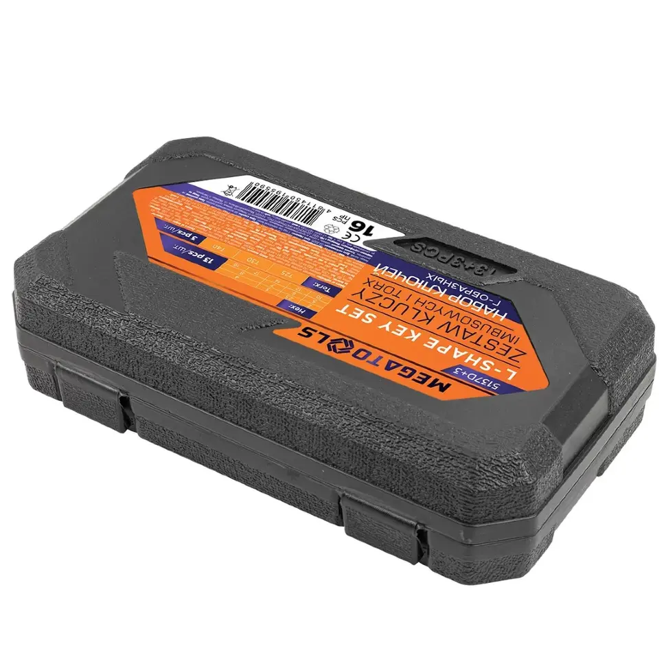 Набор Г-образных шестигранных ключей MEGATOOLS MT‑5137D+3 (13+3 предмета) — универсальный комплект для работы с внутренними шестигранными и торцевыми крепежами. Применяется в автосервисе, при сборке мебели, техники, оборудования и в других монтажных задачах.
