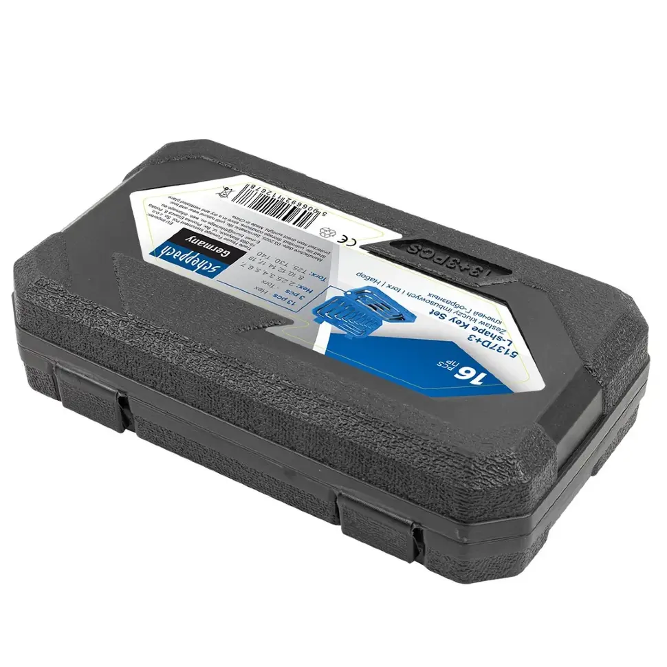 Ключи Г-образные 6-гранные, набор 13+3пр. (2, 2.5, 3-8, 10, 12, 14, 17, 19мм + T25, T30, T40) Scheppach Sch-5137D+3