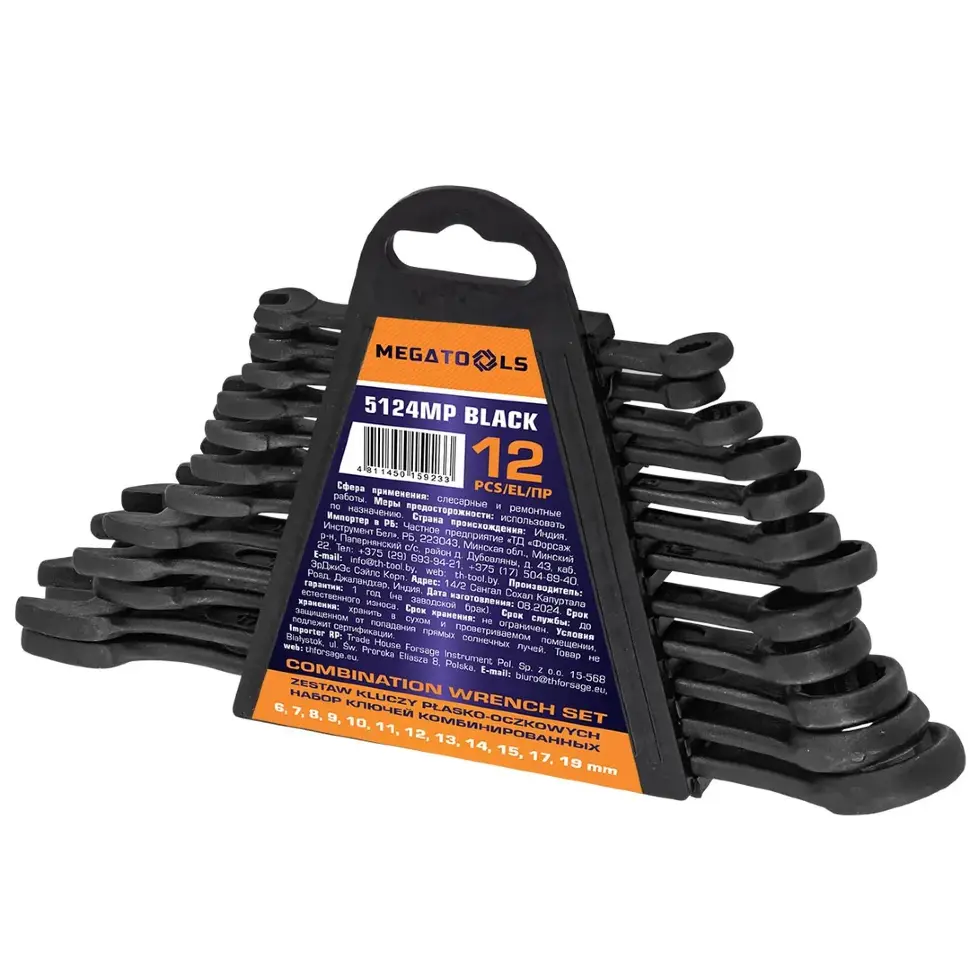 Ключи комбинированные, набор 12пр. (6-15, 17, 19мм) MEGATOOLS MT-5124MP BLACK