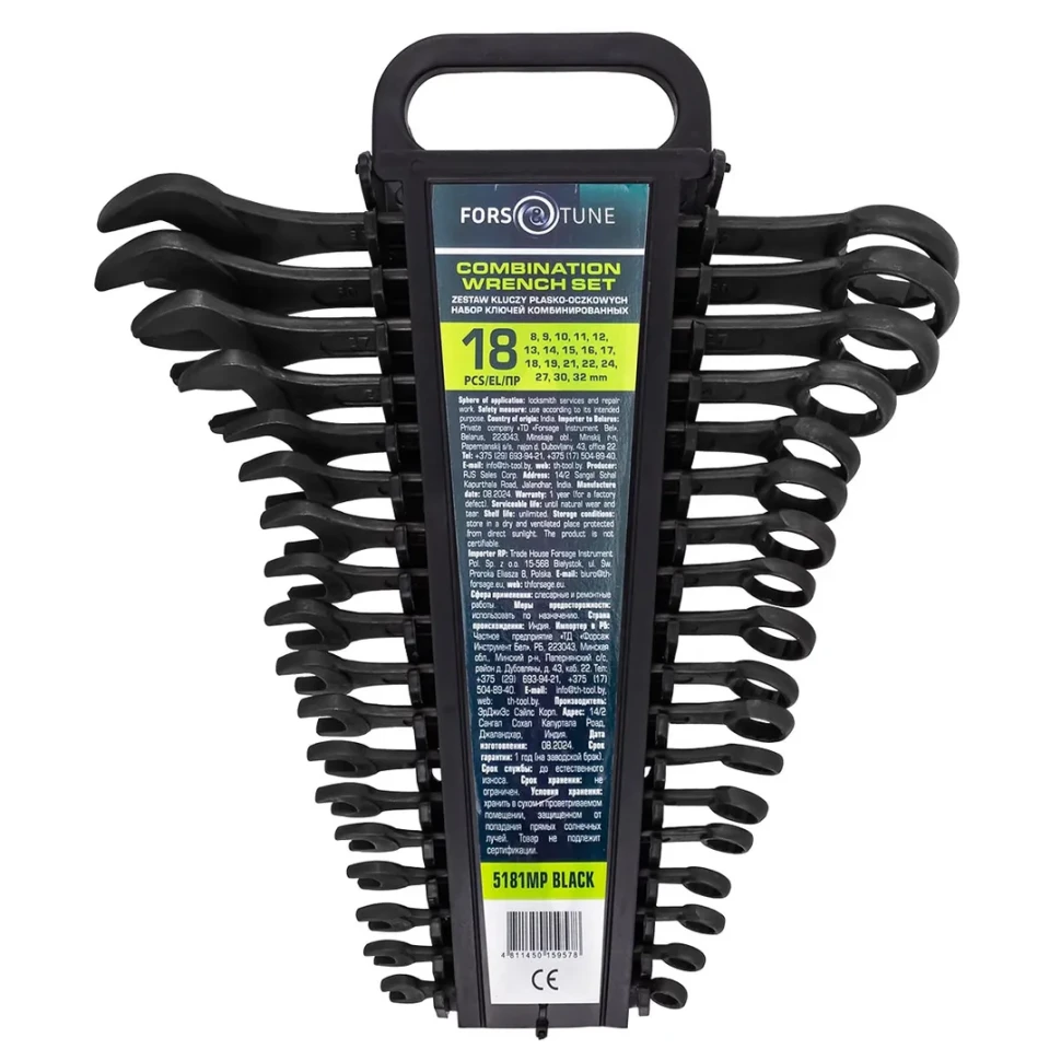 Ключи комбинированные, набор 18пр. (8-19, 21, 22, 24, 27, 30, 32мм) FORSandTUNE FORSandTUNE-5181MP BLACK