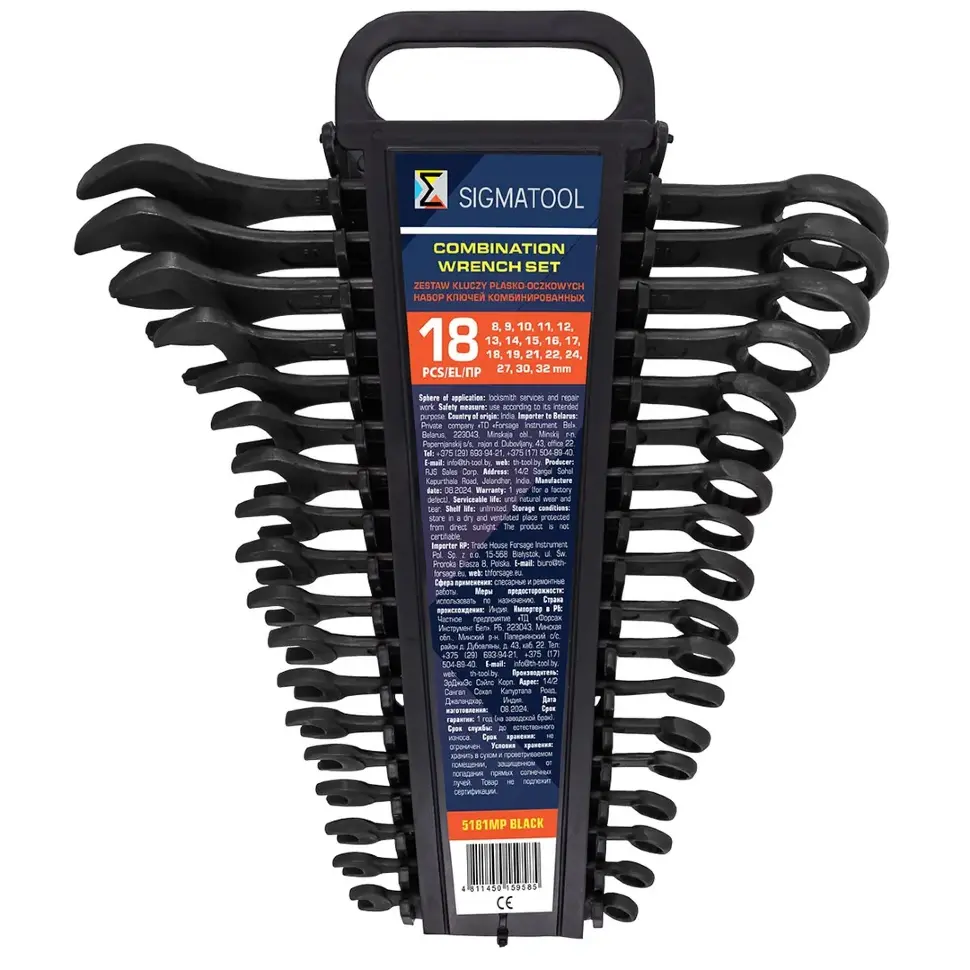 Ключи комбинированные, набор 18пр. (8-19, 21, 22, 24, 27, 30, 32мм) SIGMATOOL Sigmatool-5181MP BLACK